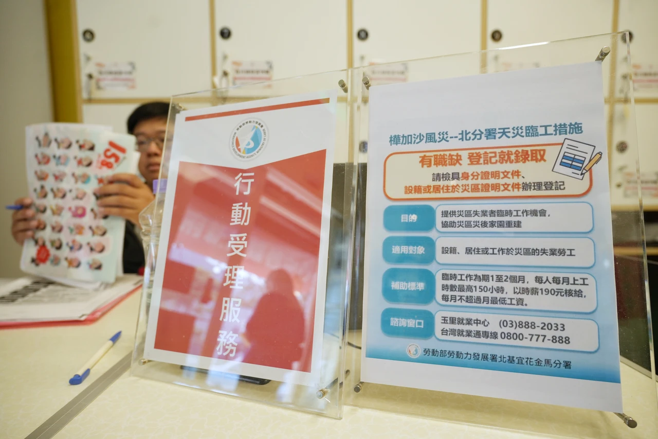勞動部勞動力發展署北基宜花金馬分署,在花蓮光復遭遇洪災後,取動天災臨工措施,此一措施是提供災區失業者臨時工作機會,協助災區災後復原,適用對象是涉及、居住或工作於災區的失業勞工,以本次情況來說,整個花蓮縣的失業勞工都可參與。