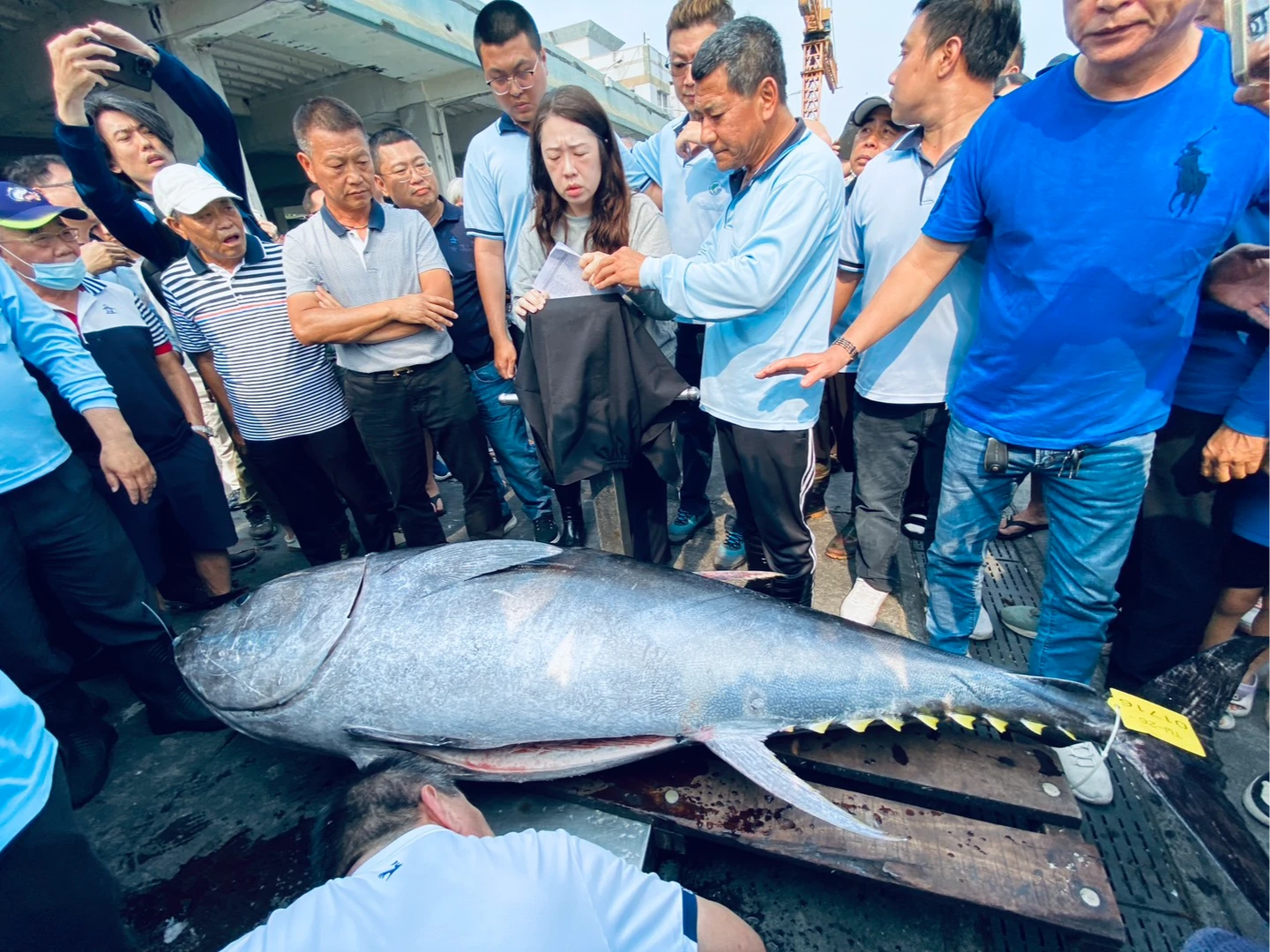 漁會鑑定小組依規定檢視起鉤活魚錄影、捕撈海域位置,並從魚體眼睛、嘴部、皮膚光澤及腹尾顏色判斷新鮮度,確認符合標準,經過磅重量超過175公斤,且為今年首艘返港漁船,正式認定為2026年「第一鮪」。