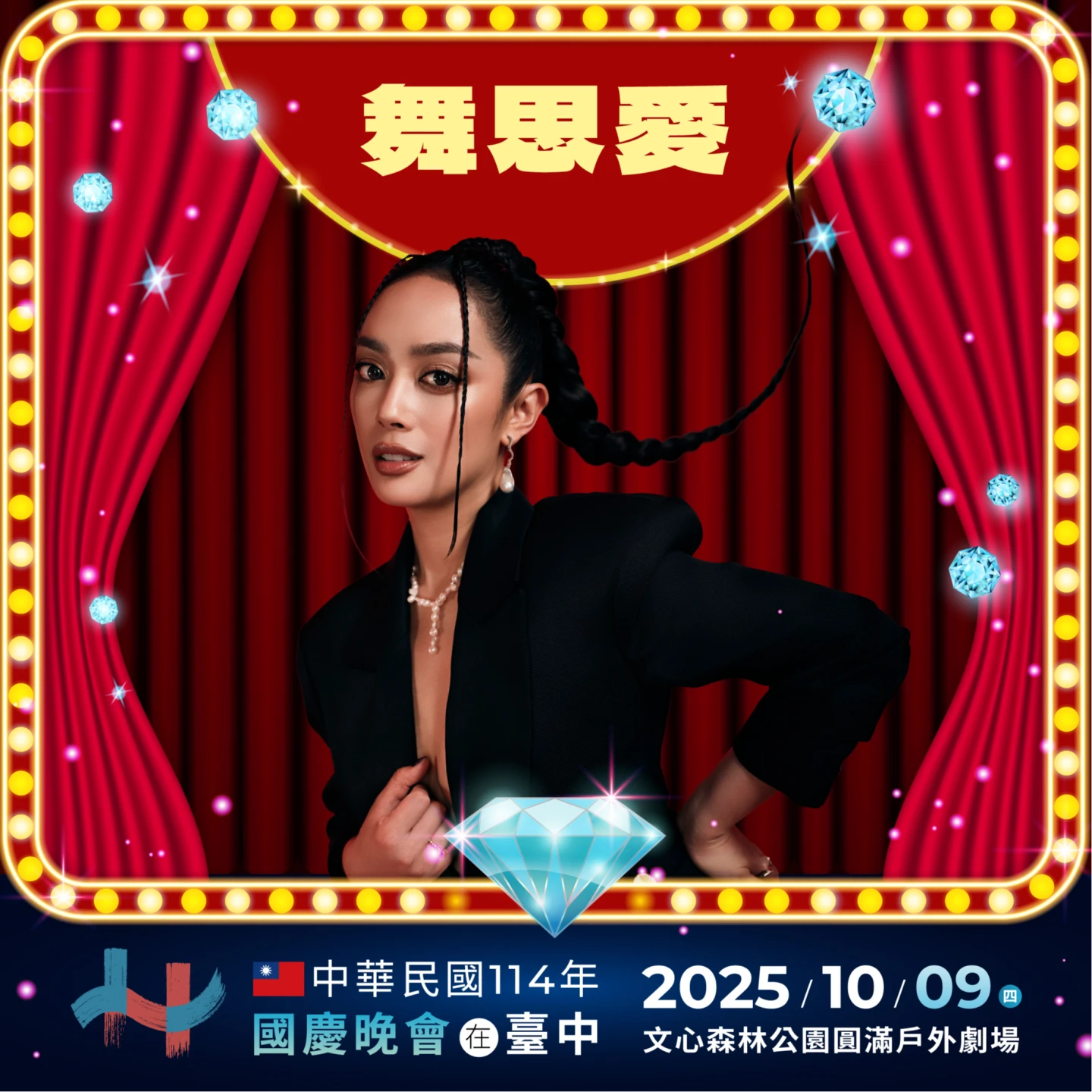2025國慶晚會將於10月9日(四)登場,地點位於台中市文心森林公園圓滿戶外劇場,16:30開放民眾入場,晚會於18:30至21:00,今年國慶晚會以「中華民國、台灣味、台中Style」為主軸,並祭出橫跨老中青三代的超華麗卡司。