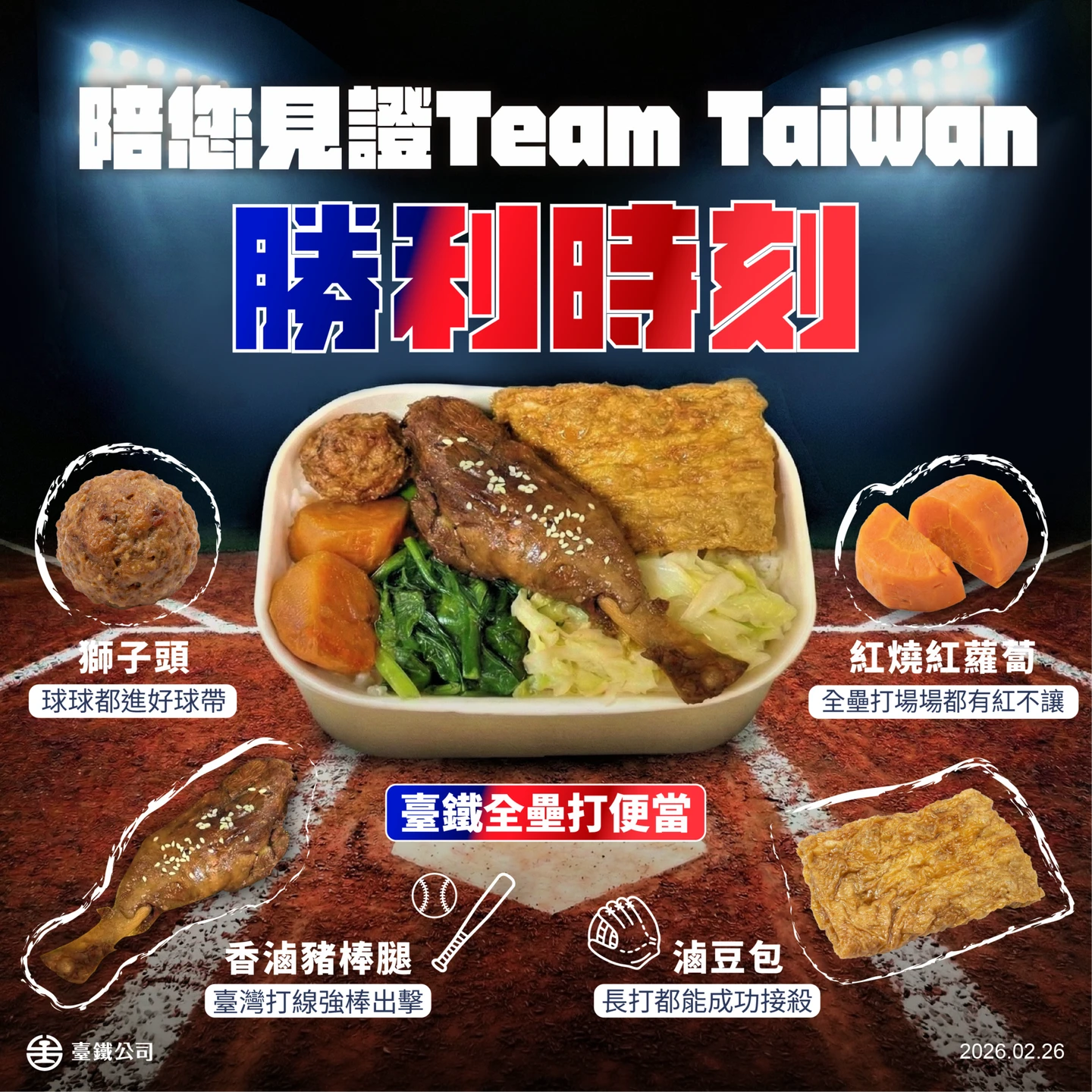 【記者陳怡文/台北報導】「2026世界棒球經典賽(World Baseball Classic)」將於3月5日至17日舉行,台鐵公司展現應援力,特別推出「全壘打便當」,本次便當嚴選帶有棒球意象的「應援食材」進行設計,讓民眾邊吃邊應援,每份售價188元,販售期間自115年3月2日至3月15日。