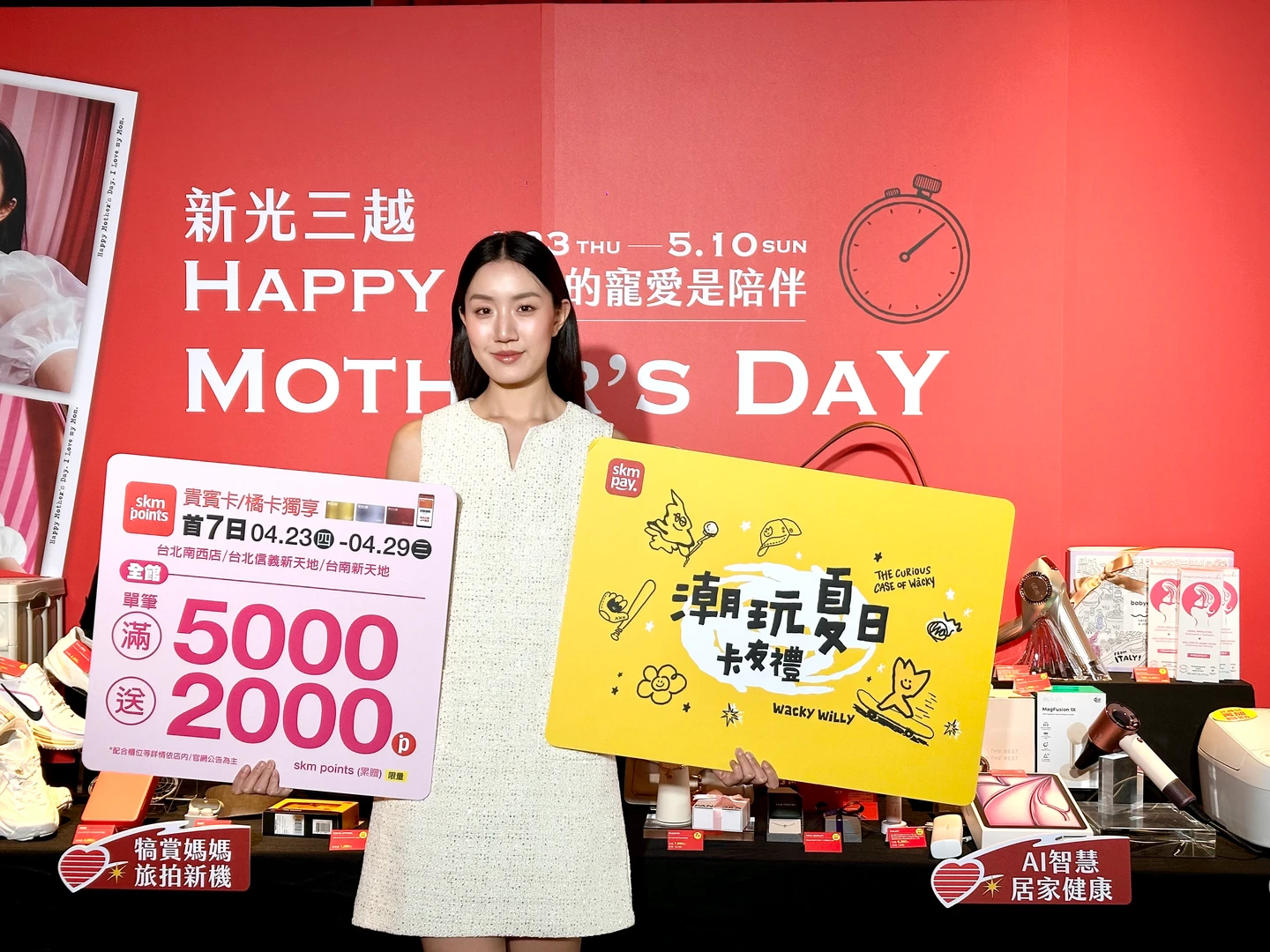 迎接母親節到來,新光三越今年以「最好的寵愛是陪伴!」為主題,4月23日至4月29日會員專屬全館單筆滿仟送仟點、指定業種單筆滿萬送4,000點;新光三越也首度推出「陪伴計時器」,只需在店內開啟APP並進行GPS定位,即可開始累積與家人相處的時數,每滿1小時起可兌換限定禮。