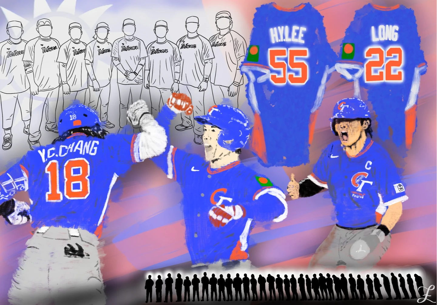 莊陳仲敖昨在Threads上傳親筆繪製的畫作,還寫下「把2026WBC的回憶放進畫裡」,畫中他將「費仔」費爾柴德(Stuart Fairchild)和張育成開心擊肘的瞬間畫了出來,而「台灣隊長」陳傑憲則在旁邊振奮吶喊,象徵他們3人是本屆經典賽的核心人物,另外畫作左上角還畫出教練團的身影,右下角則畫出中華隊30位戰將的背影。最值得一提的是,他將因傷無緣參賽的李灝宇和「龍仔」龍恩(Jonathon Long)的球衣也都畫進去,讓球迷看了以後讚不絕口,並留下深深感動。