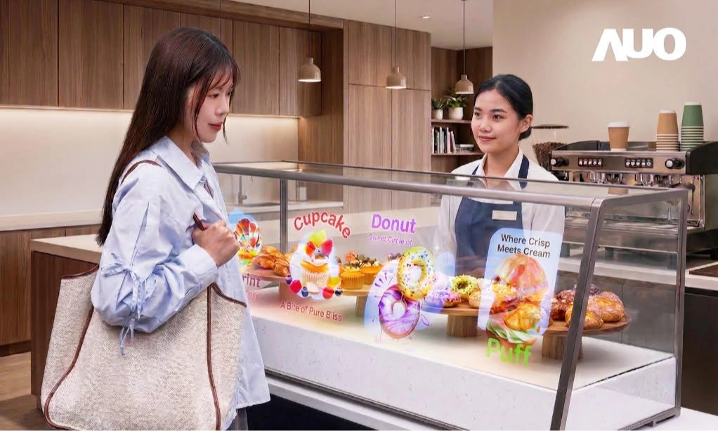 友達以 Micro LED 高亮度、廣色域與透明顯示優勢,打造 54 吋甜點/展示櫃。友達提供