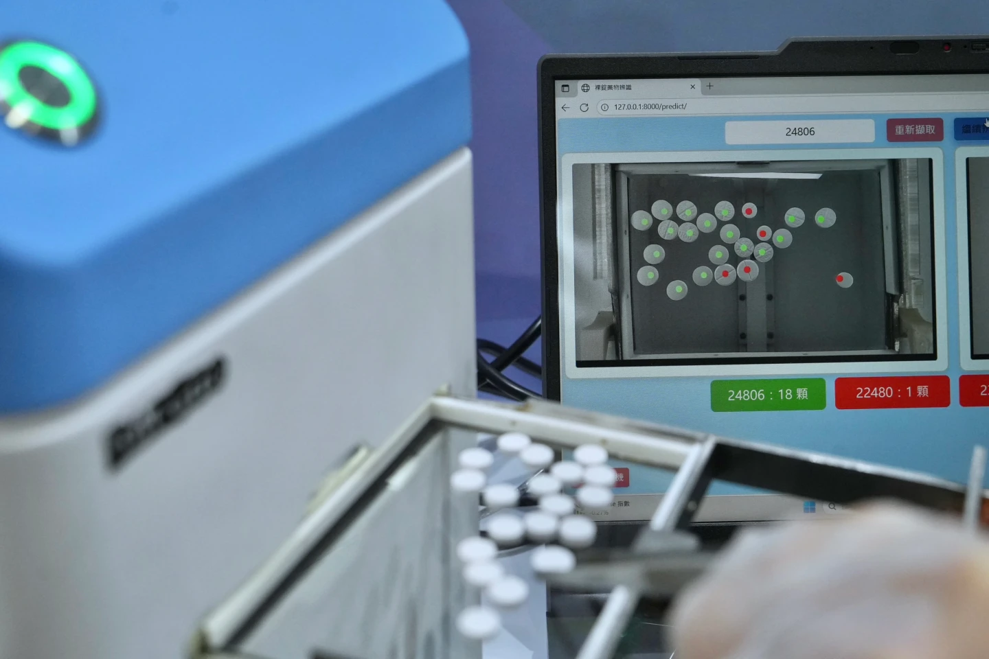 【記者林芳如/台北報導】病人病況改變、處置取消、手術延期等情況會出現已調劑但尚未給藥、需退回藥局入庫管理的「回錠」。馬偕醫院每日約需處理1000顆退藥,過去藥師人工逐顆反覆比對確認才能歸庫,耗費人力與時間,也可能因疲勞誤置,未來導入AI辨識機後,2秒內就能完成200顆辨識,精准度高達98%,讓藥師有人力去調劑、補藥、衛教和協助查房。