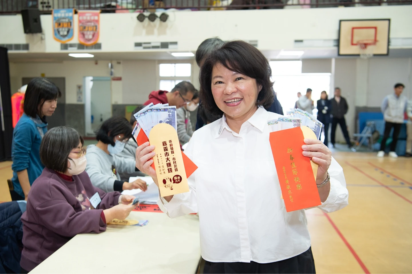 普發今天起跑,黃敏惠一早便前往北興國中、大同國小等發放所視察,現場秩序井然,氣氛則超歡樂,不少人領到錢直接轉身感謝市長,「外縣市親友看到新聞都很羨慕」有人說,這是嘉義市第2次普發現金,身為市民感到驕傲與幸福,「年節快到了,這筆錢剛好可以加菜、包紅包給長輩」。
