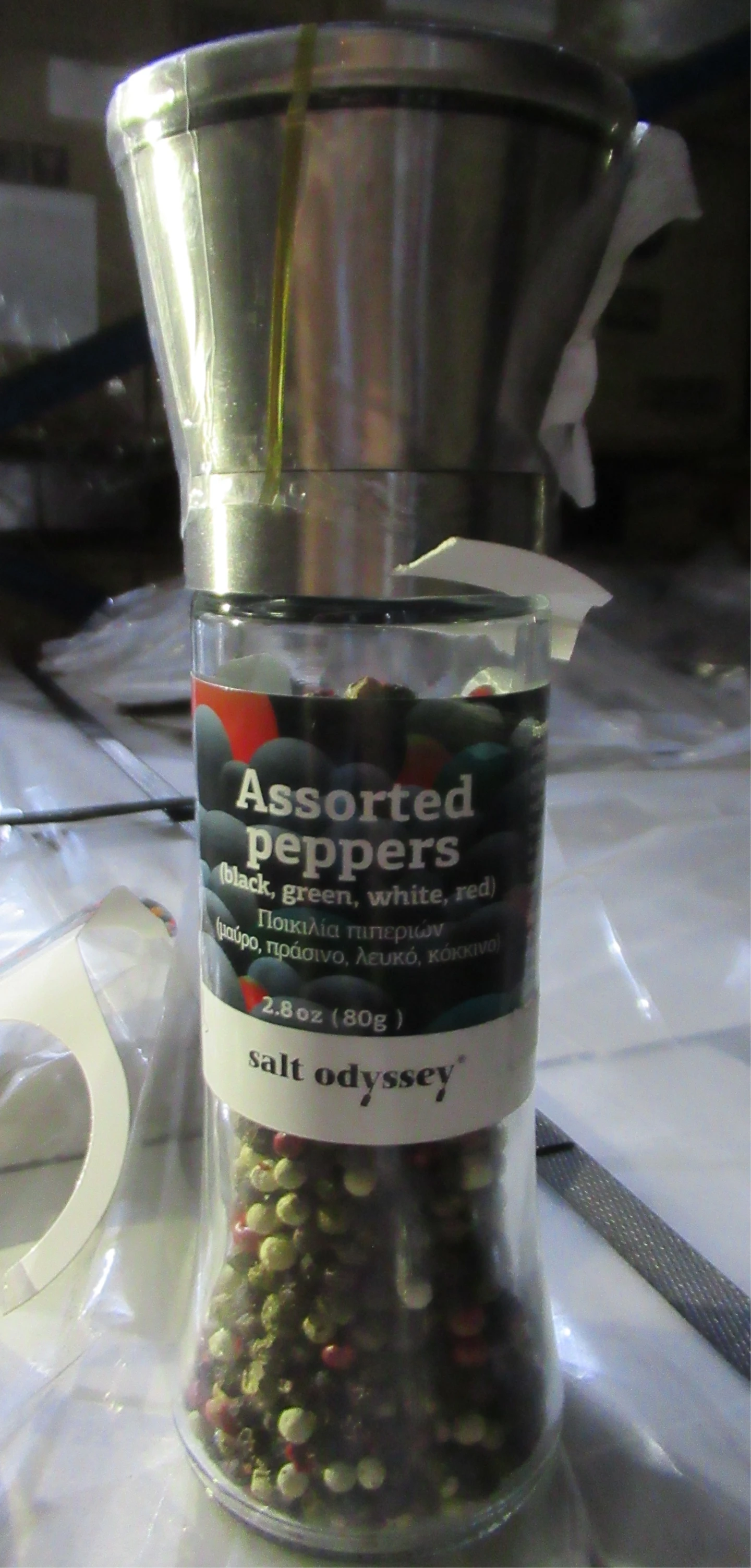 另外,廣紘國際股份有限公司報驗的越南彩虹胡椒粒,品牌名為「SALT ODYSSEY」,製造廠「SALT ODYSSEY SINGLE MEMBER P.C.」被檢出蘇丹色素四號,依據《食品安全衛生管理法》屬於不得使用的物質,這批越南的彩虹胡椒粒在邊境必須銷毀,不得退運。