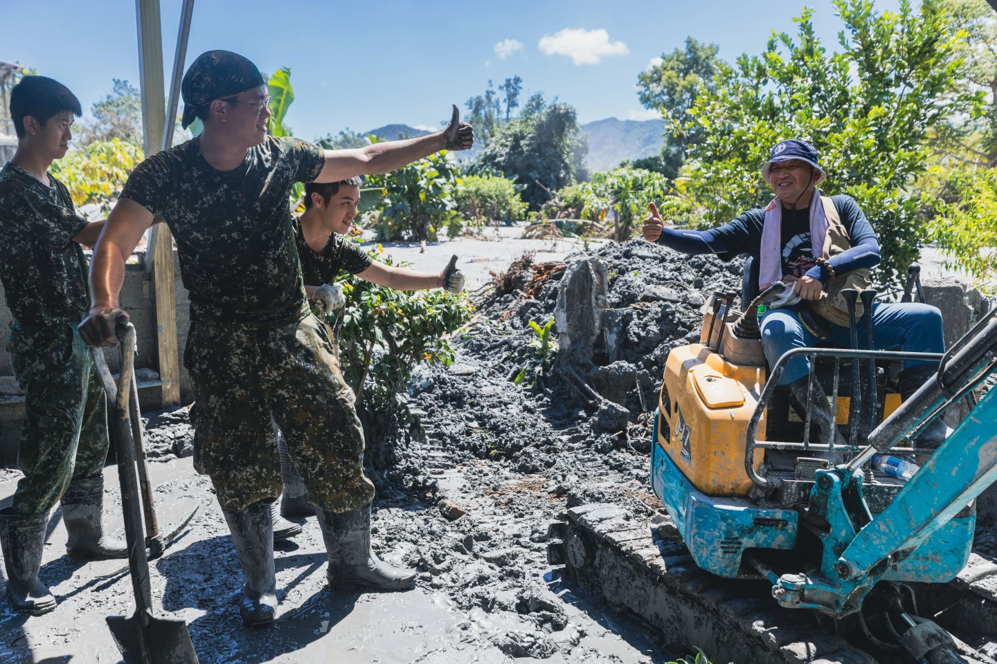 第二作戰區則說,自堰塞湖溢流致災迄今,國軍已累計投入逾萬餘人次兵力,以最迅速有效的方式協助災區重建,並透過任務日夜交替輪班,派遣工兵大型機具清除街道淤泥及廢棄物,加速恢復街道市景,以及化學兵部隊出動各式消毒裝備,針對公眾設施執行清消,確保環境衛生安全,要用最高效率、最短時間,持續協助鄉親度過難關。