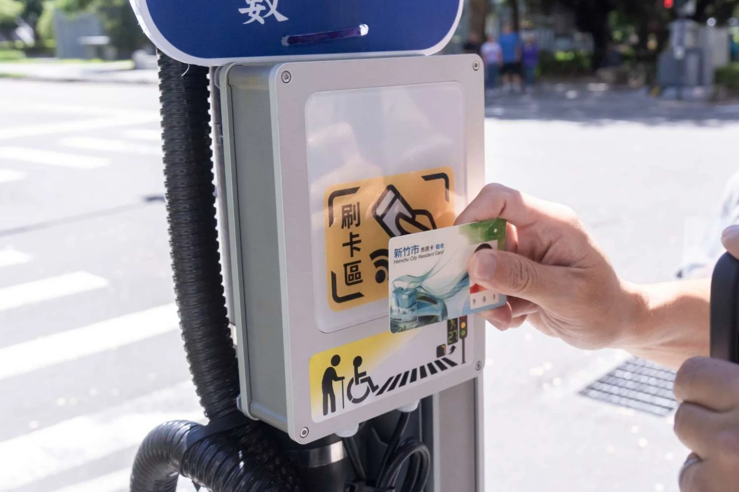 新竹市表示,竹市65歲以上長者佔比達15.7%,因此市府參考了新加坡的經驗,克服了票證與交通控制系統整合的技術難題,推出了這項服務。試辦設施選定在鄰近醫療院所的護城河綠帶路口,並搭配了放大型行人號誌及行人專用時相,以保障長者或身障者的通行安全。