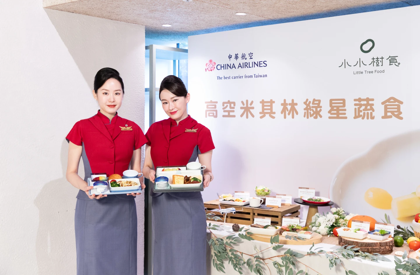 此次聯名合作,小小樹食為華航客製設計機上餐點,包括桃園飛往美加歐澳等長程航班三艙等西式早餐料理。豪華商務艙旅客可享用「松露炒蛋佐鹽焗紅地瓜與奶油乳酪醬」主菜,天然健康的鹽烤紅地瓜,搭配口感綿密濃郁的乳酪醬,佐松露炒蛋;在豪華經濟艙推出「鹹法式吐司早餐盤」,鬆軟吐司及鹹香奶油炒蛋、烤青花菜,滿足晨間食慾;經濟艙旅客可以選擇「洋菇法士達起司歐姆蛋」,香氣十足的起司歐姆蛋結合法士達 (紅/黃甜椒、青椒、洋蔥等),在萬呎高空中也能享受層次豐富的風味組合。