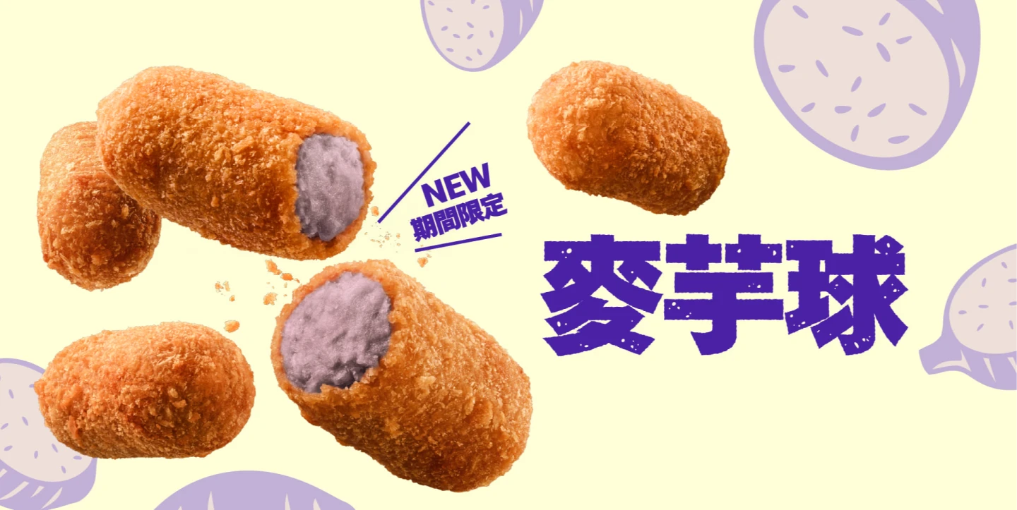 冬天就是要吃芋頭!台灣麥當勞宣布推出全新芋頭點心「麥芋球」,自1月7日起至1月27日(或售完為止)同步限定販售,單點66元、套餐加購價59元,嚴選台灣在地食材大甲芋頭製作,外層金黃香脆、內餡綿密滑順,每一口都是滿滿的芋泥香氣,芋頭控準備開吃!