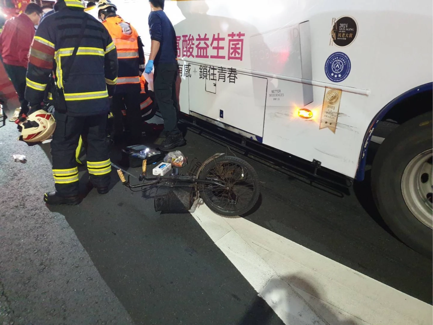 據指出,公車司機見路人依序通過路口時,剛起步不久,不明原因擦撞右側腳踏車,婦人慘遭捲入車底,公車司機感覺車身劇烈晃動,趕緊停車查看,婦人已遭車輪輾過,一度失去生命跡象。