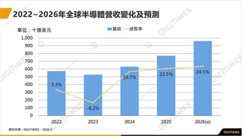 2026年全球半導體營收年增24.5%,上看9600億美元