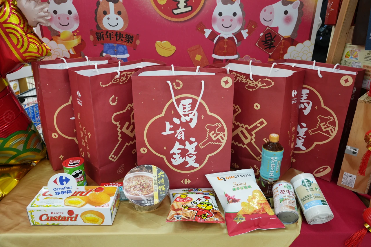家樂福2026馬年福袋將於大年初一2月17日上午10點全台家樂福量販/超市開賣,每袋售價198元(全台限量15,000個),內容物價值近500元,每袋內附一張刮刮卡。值得一提的是,統一集團日前宣布台灣家樂福終止品牌授權合約,將啟動改名計畫,也因此今年是「家樂福最後一年福袋」,為了提供顧客新年「馬上有獎」,刮刮卡再也不會刮到銘謝惠顧,張張都能刮中獎項!