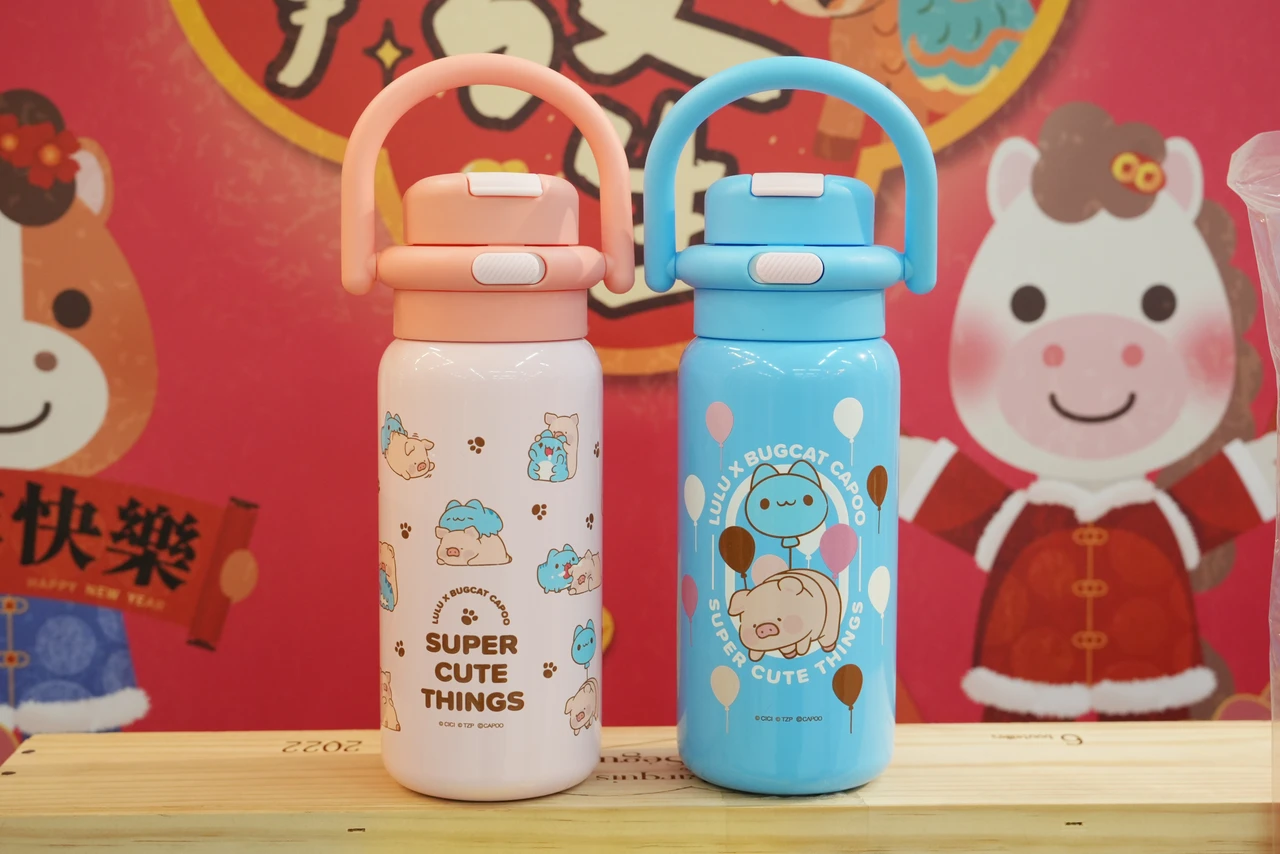 周邊商品包含「LULU豬x咖波靠枕坐墊組/LULU豬款、咖波款」加價購399元/個,限量各2,500個;「LULU豬x咖波附提把保溫瓶」容量600ml、加價購399元,限量各2,500個;「LULU豬x咖波造型半立體公仔磁鐵(4款+1驚喜版)」加價購79元,限量10,000個;「LULU豬x咖波手持風扇」電扇風段100段,風扇中間鋁片可製冷加價購599元,限量各2,000個。