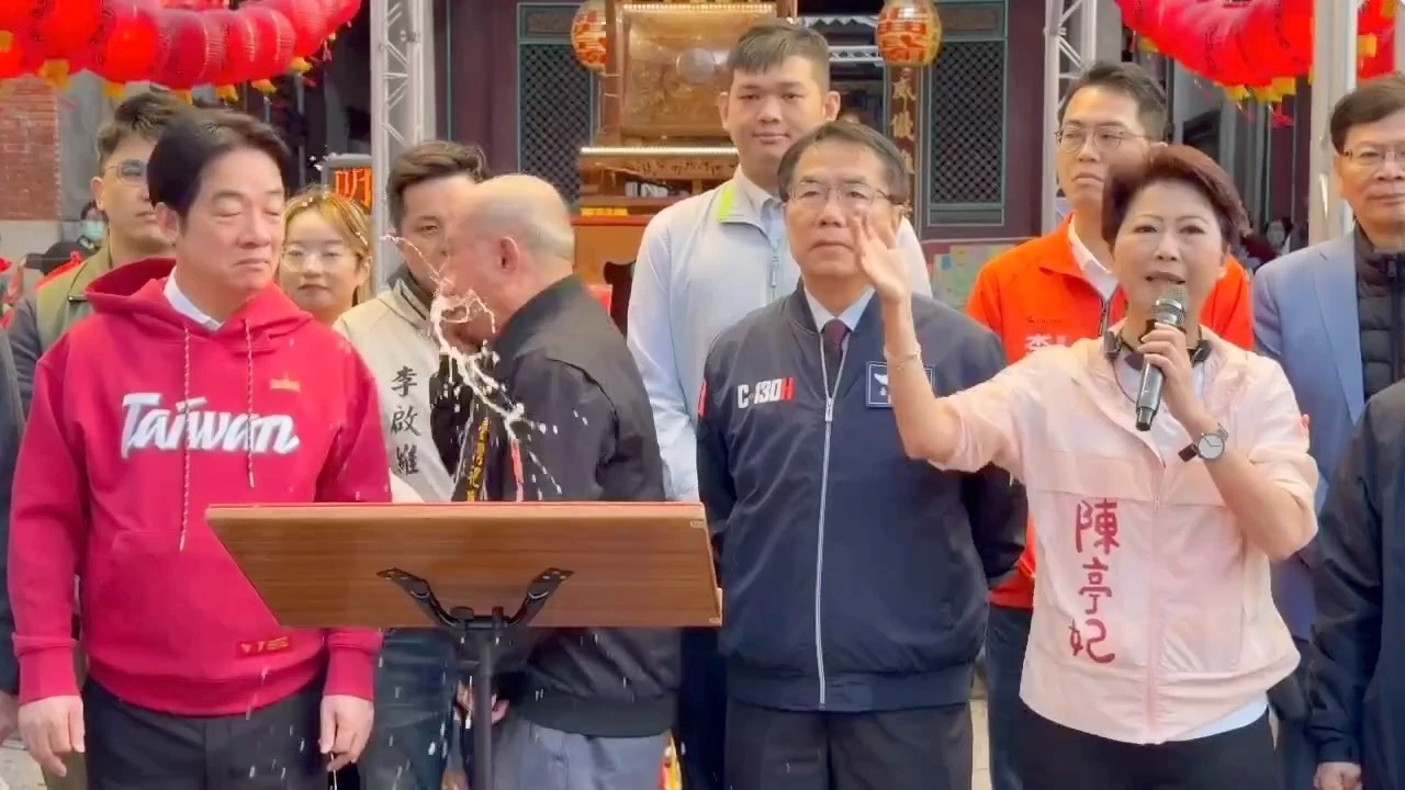 【記者陳力維/綜合報導】今(18)日是農曆大年初二,總統賴清德上午前往台南中西區的「臺灣祀典武廟」參香祈福,並現場發放福袋向民眾拜年,現場氣氛熱烈。然而活動中發生一段插曲,廟方主委林培火在民進黨立委陳亭妃致詞時,疑似身體不適突然嘔吐,且噴濺到就站在他左側的總統賴清德,場面一度混亂。賴清德當下表現鎮定,趕忙關心林培火身體狀況,並在稍作整理後繼續完成行程。