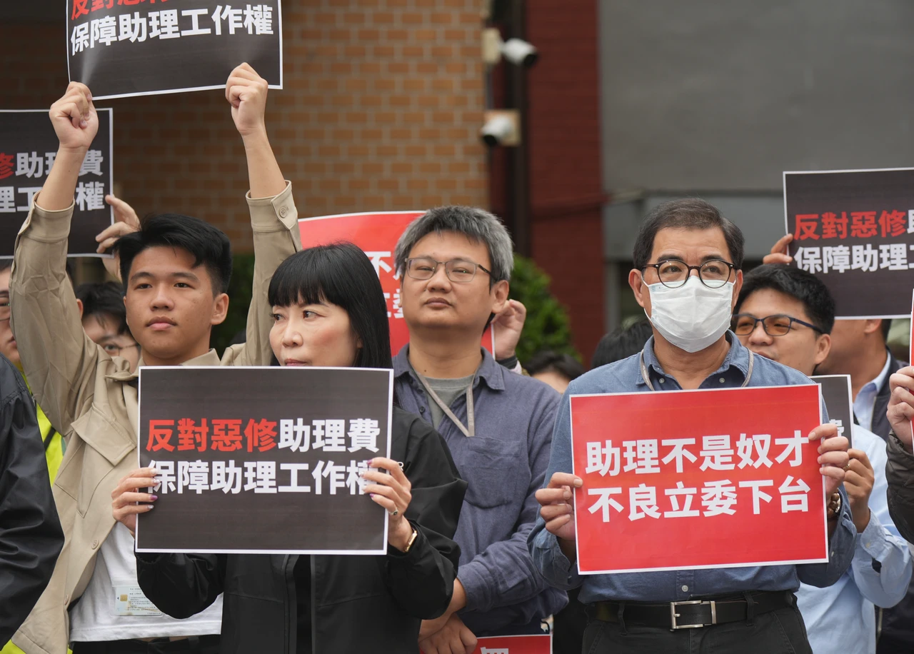 【記者蘇柏銓/台北報導】藍委陳玉珍修法「助理費除罪化」引爆國會助理反彈,迄今連署近300人要求撤回,今早更聚集立法院大門表達抗議,隨後陳玉珍跟助理工會協商,最終達到三點共識,陳玉珍承諾對助理工作權、福利保障絕不倒退,制度均不影響,加速推動法制化,並且願用修正動議,整合助理工會所提修法版本,送立法院司法及法制委員會一併審查。不過與會過程中,連署助理發起人退席抗議,批評訴求是「撤回提案」,不能接受工會跟陳玉珍的協議。
