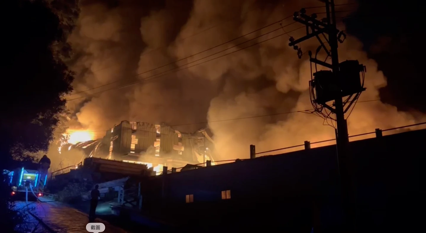 消防員立即布水線灌救,直到深夜火勢尚未熄滅,初估燃燒面積約5676平方公尺,所幸現場沒有人傷亡,詳細起火原因,後續火調人員調查釐清。