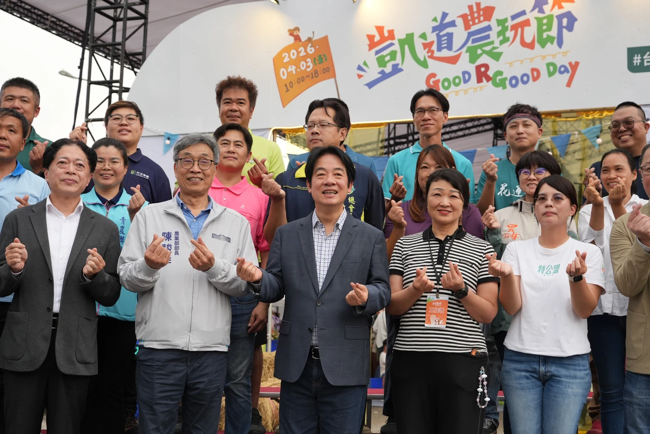 賴清德也前往小農市集攤位參觀,聽取米食、洋蔥、漁產加工及友善畜牧產品等介紹,並與攤商業者互動交流,表達對臺灣在地農產品的支持。他肯定農業部打造結合農業與藝術的親子遊戲場域,讓民眾與孩子們親近農業、認識土地,進一步深化國人對在地農業的支持。