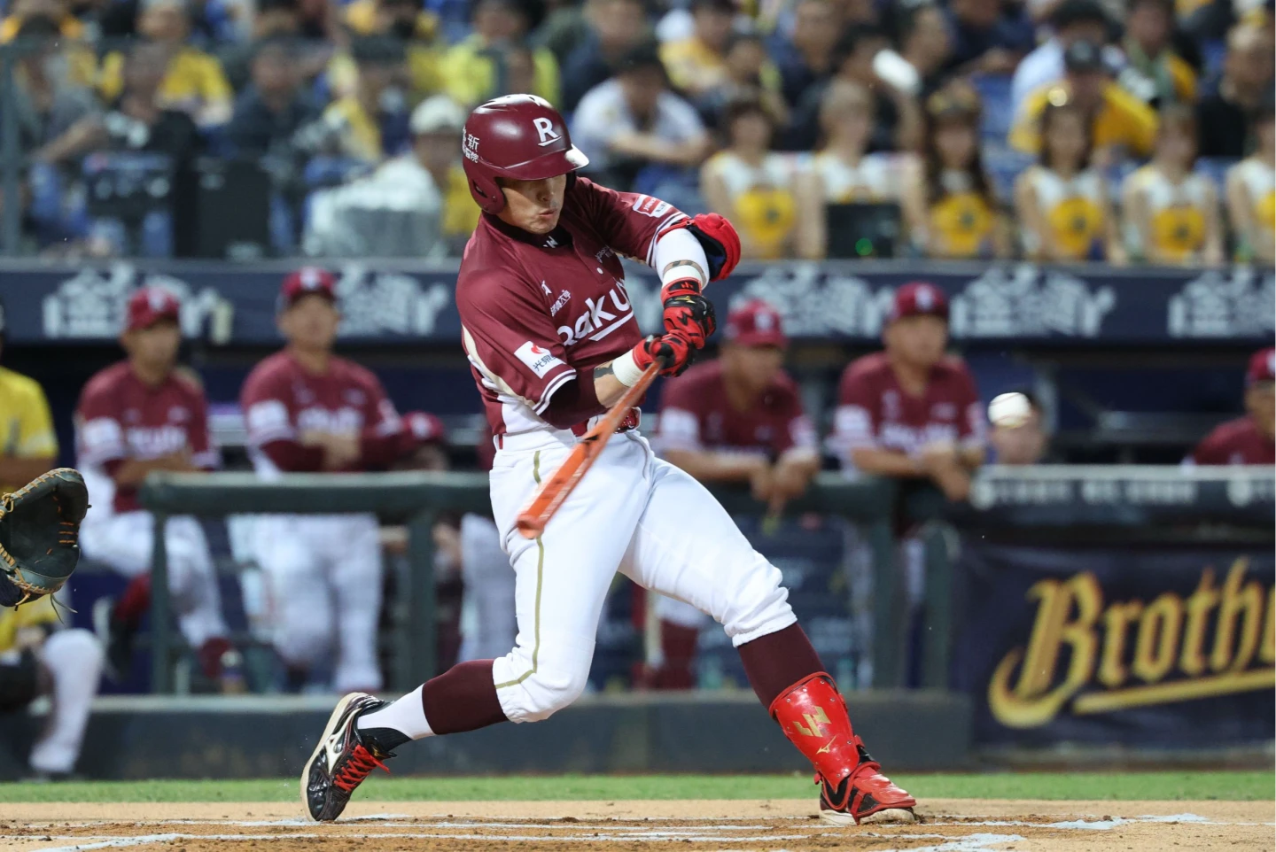 四局下,比數出現變化,黃韋盛安打上壘,高宇杰三壘滾地球,桃猿三壘手林智平傳短,一壘手梁家榮沒接到球,提前起跑的黃韋盛趁著失誤一路衝回本壘,跑回超前分,中信兄弟4:3領先。
