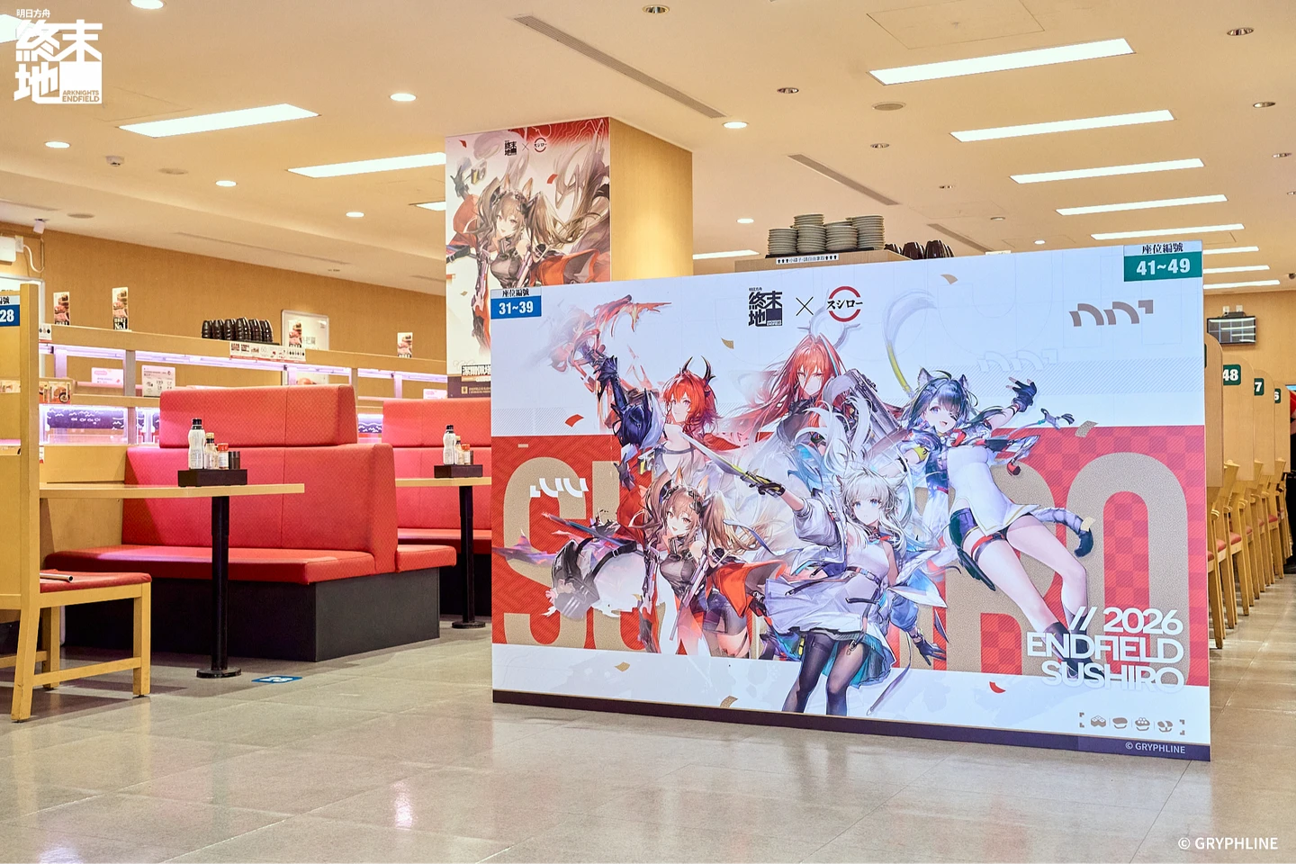 為營造沉浸式的進店體驗,壽司郎全台限定5間主題店特別融入角色視覺與遊戲元素進行店裝設計,一踏入店鋪即能感受《明日方舟:終末地》的科幻拓荒氛圍。門市包含壽司郎台北中華路店、壽司郎新北林口店、壽司郎台中黎明市政南店、壽司郎台南安平店、壽司郎高雄義享店。