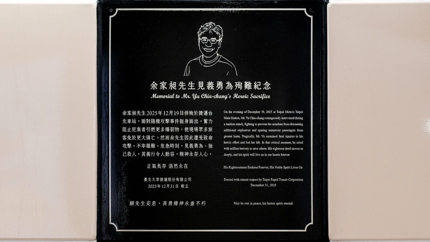 為致敬余家昶挺身阻擋張文施暴,台北捷運公司在台北車站往M8出口的通道牆面設置永久紀念牌。北捷提供