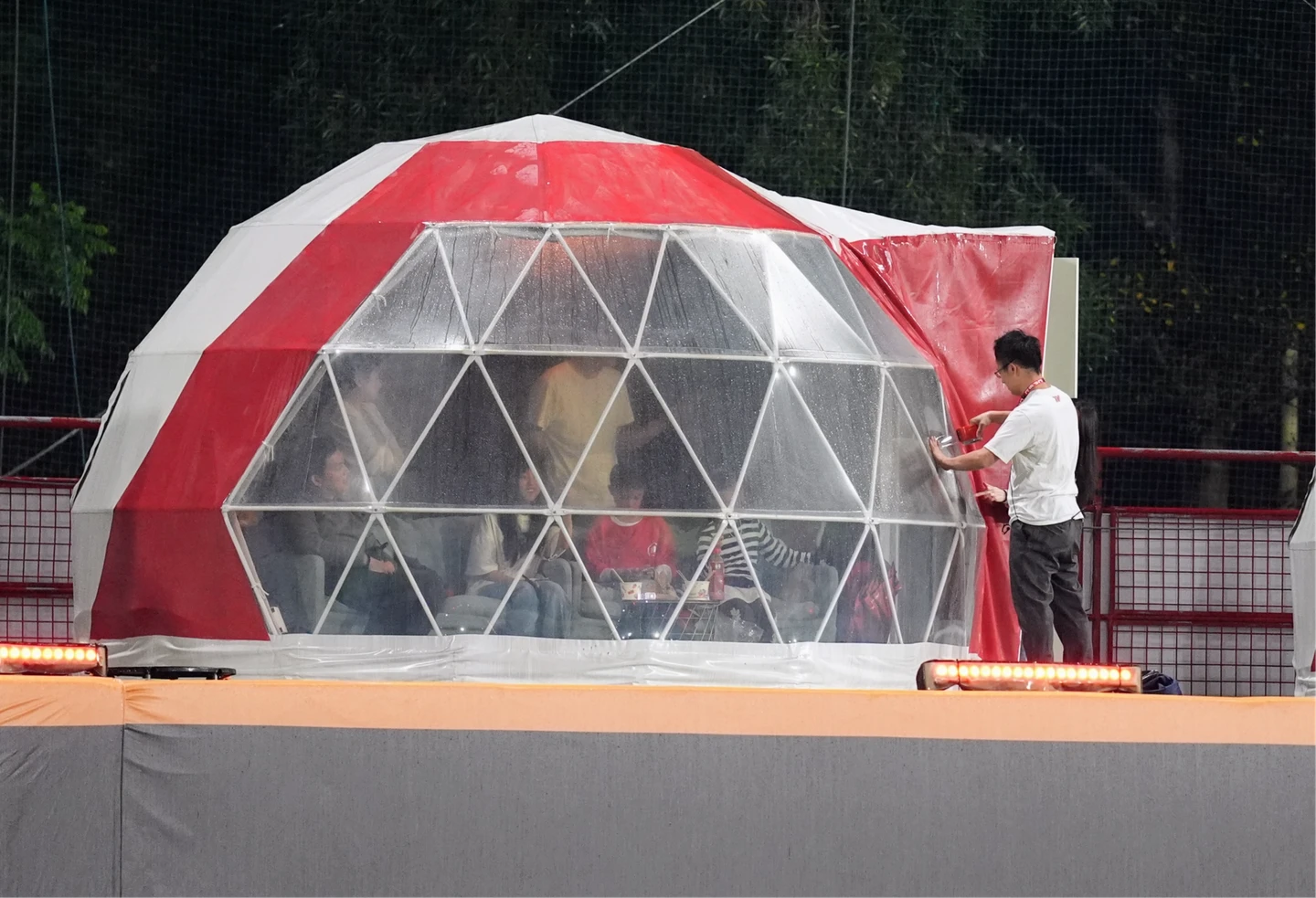 有趣的是,昨天這發全壘打直接打中左外野的星空露營席,導致後來比賽中下雨時球迷在帳篷內卻淋雨的有趣畫面。劉基鴻不好意思的說:「打完後遇到領隊,他跟我說:『你把那個(帳篷)打破了。』,我說:『真的假的啦?』聽到的時候真的很驚訝,怎麼會破掉?」