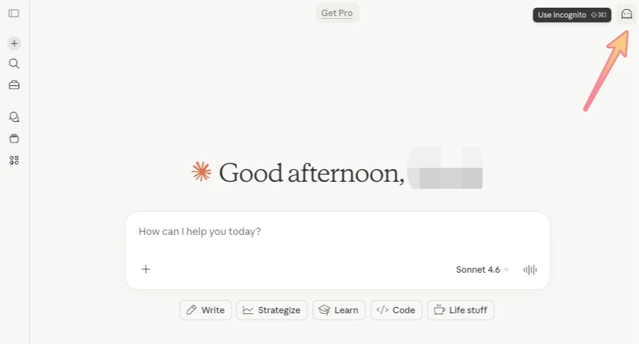 Gemini和ChatGPT稱之為「臨時聊天」,而Claude則稱之為「無痕」(incognito)模式;在新聊天介面的右上角,你會看到一個「幽靈」或虛線的聊天氣泡圖示。啟用此設定後,聊天記錄將從歷史記錄中消失,並且不會影響未來的回應。