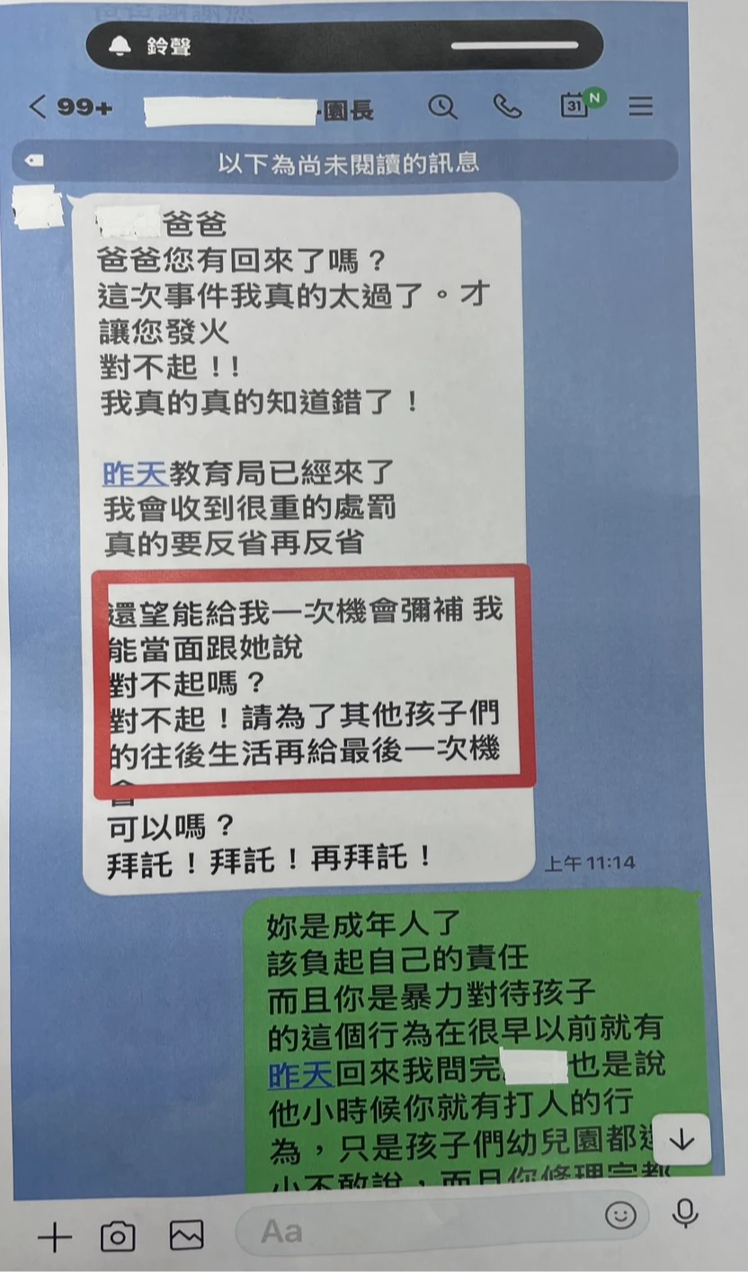 女園長事後傳訊道歉 情勒家長「為了其他孩子們」