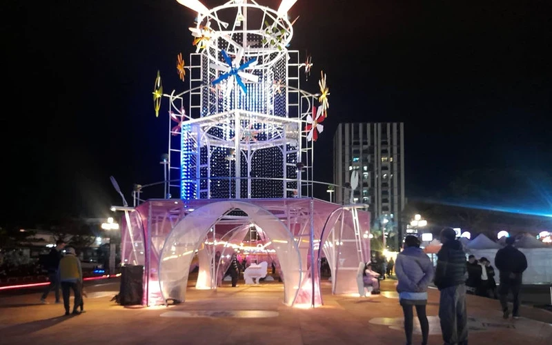 面對各界對於美感與預算的質疑,花蓮縣政府回應,藝術本就允許討論與不同的理解方式,對於民眾與遊客的感受表示尊重,並強調若觀者願意走進創作脈絡,能看見更多土地與文化的連結。至於1980萬元的總經費,縣府澄清並非僅用於單一主燈,而是涵蓋了整體策展、燈區裝置、電力安維、為期一個月的街頭藝人展演、煙火、小提燈製作及行銷宣傳等項目。縣府重申,將持續以包容多元聲音的態度,推動公共藝術與城市美學。
