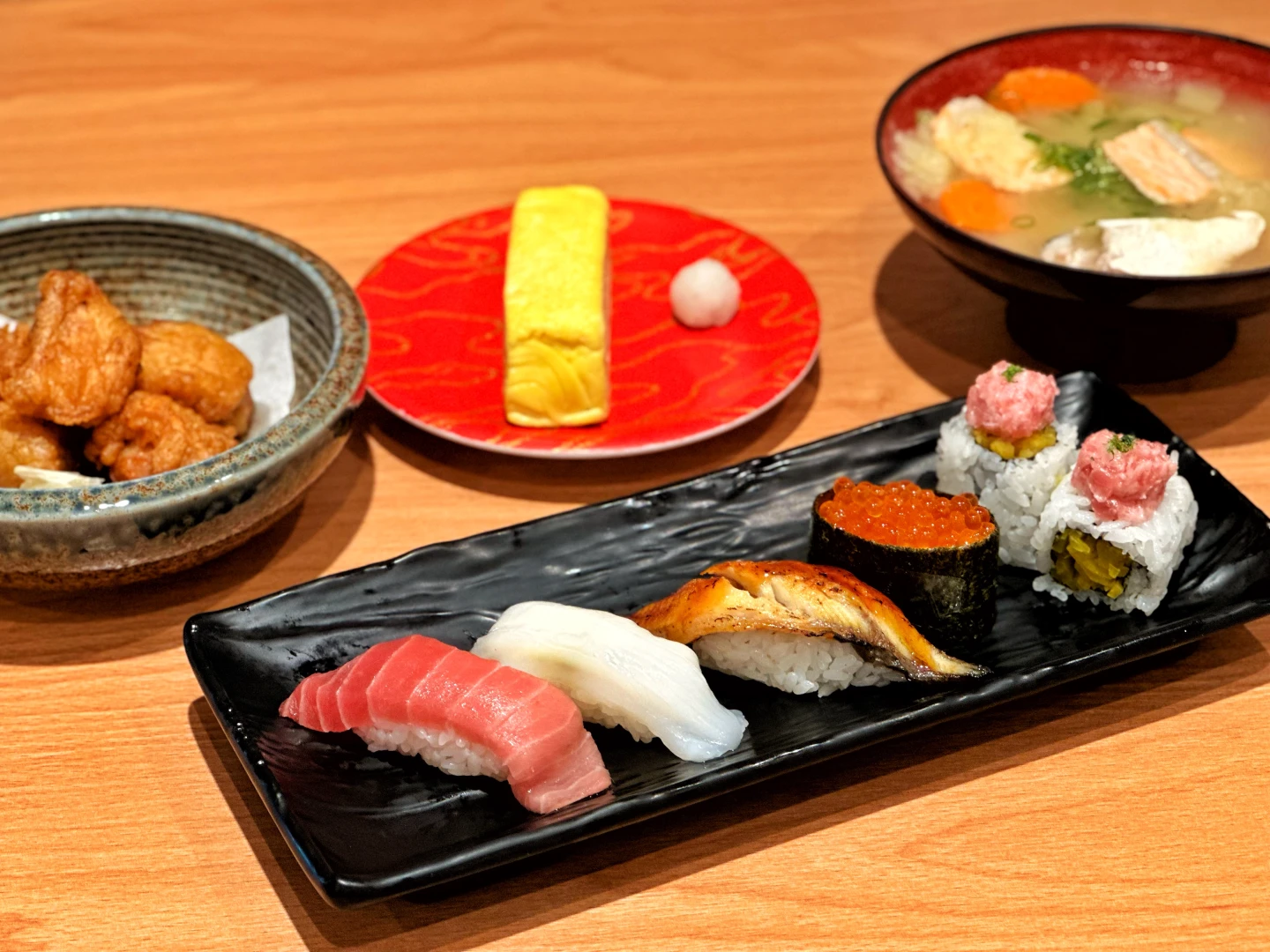 合點壽司與其他迴轉壽司不同的是,堅持以最費力的「職人手握」及「現點現握」形式進軍台灣,接近Omakase的頂級壽司體驗。這次由日本母公司RDC集團,擔任商品部本部長兼台灣總料理長—川村圭帶來「總料理長私房特選套餐」,套餐內容包括五貫壽司「黑鮪魚中腹、槍烏賊、鰻魚、鮭魚卵軍艦、鮪魚泥花卷」,加上唐揚雞與玉子燒,並提供Highball或味噌湯、可樂三擇一,原價638元、特價520元。