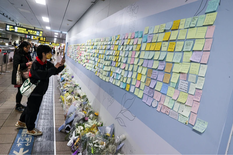 案發現場設置悼念牆 致敬英雄英勇守護眾人