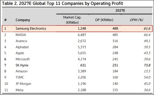 三星2027年營利估衝488兆韓元、略超輝達 成全球最賺錢公司