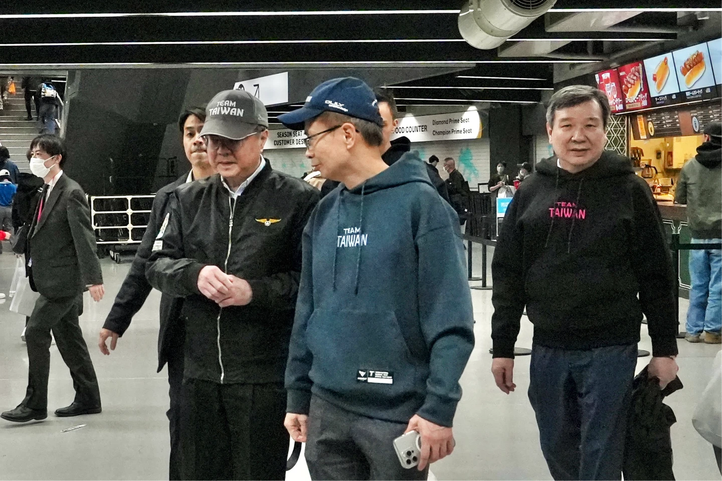 卓榮泰今上午抵達日本,在駐日代表李逸洋、運動部長李洋陪同下,前往東京巨蛋觀賞台捷大戰。台灣球迷認出後,紛喊「院長好」、「Team Taiwan」,卓走向座位時,也一路跟台灣民眾招呼、握手。