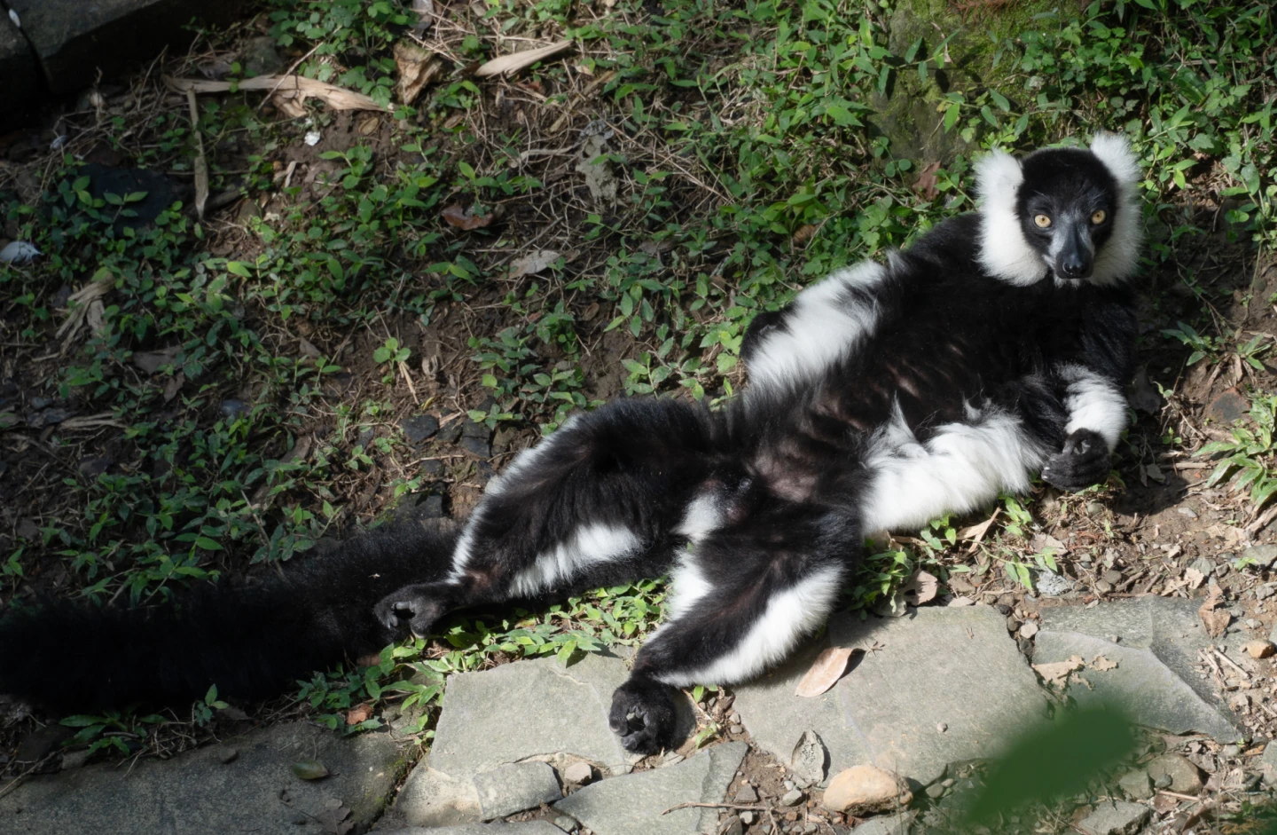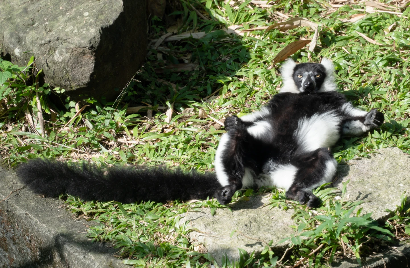 【記者許皓婷/台北報導】近日天氣日夜溫差變化大,白天偶爾有暖陽探頭,動物園裡許多動物都把握曬太陽的好機會,享受冬日的幸福時光。台北市立動物園非洲動物區的狐猴們不但喜愛日光浴,還呈現各種悠哉舒適的姿勢,有些放鬆席地而坐,有些順勢躺臥在草地上呈「大」字,還有抱成一團的「毛球」,俏皮又可愛的模樣都讓遊客紛紛駐足。