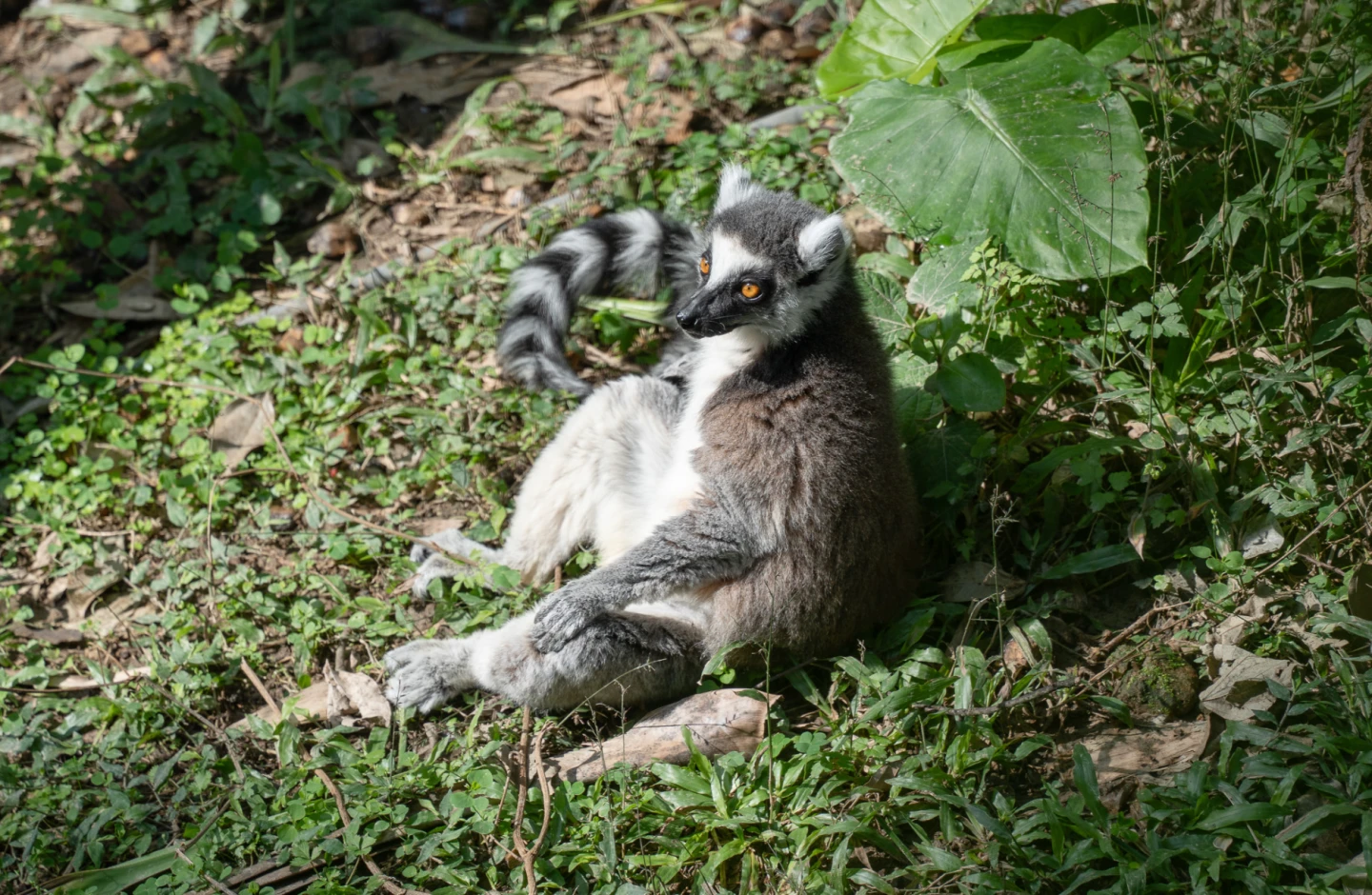 台北市立動物園照養環尾狐猴、白頸狐猴、褐狐猴3種狐猴,在非洲動物區通往溫帶動物區的斜坡步道兩側正是狐猴活動的戶外大網室,遊客除了有機會觀察到狐猴在樹冠活動的模樣,每當風和日麗的天氣,也能看到狐猴們爬上枝頭或找到開闊草地曬太陽,台灣的四季分明、溫差變化明顯,因此對來自馬達加斯加島熱帶森林的狐猴來說,溫暖舒適的日光浴是冬日的難得享受。