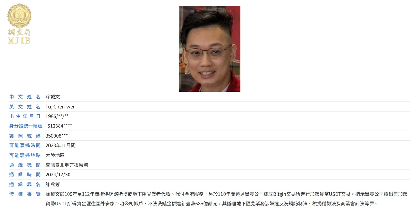 檢警追查發現,涂誠文涉利用銀樓當掩護,成立揚盛集團經營賭博、洗錢及地下匯兌等業務,3年間洗錢高達2476億元,不法所得高達33億元,然而檢警2023年11月發動搜索行動前,涂誠文疑似早收到風聲,竟早一步潛逃遭通緝。北檢2025年1月起訴同案被告、幣商幣竟公司負責人及「虛擬貨幣女神」張于庭等人,涂誠文則發布通緝。