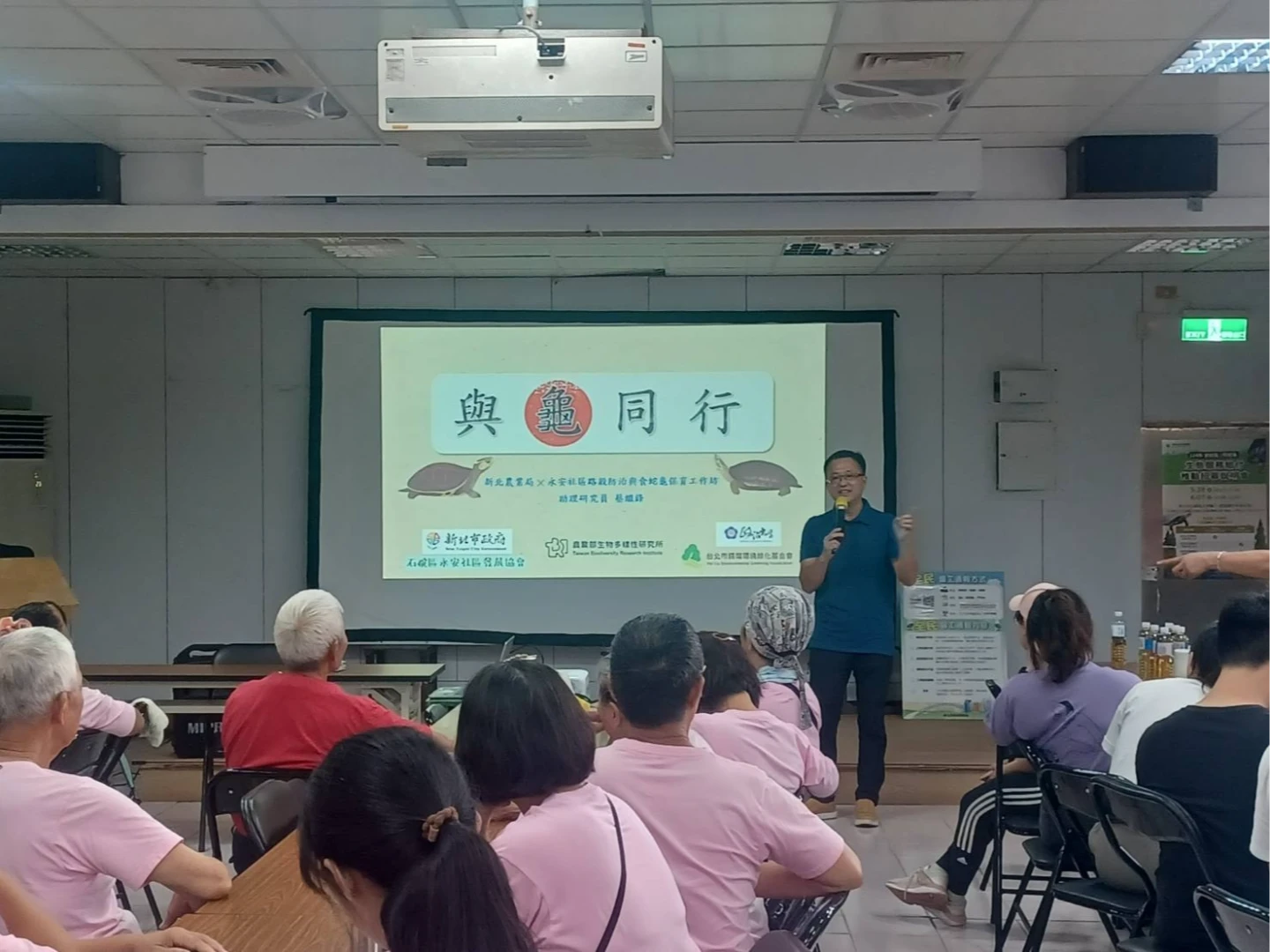同時,農業局也於石碇區永安社區辦理「與龜同行:路殺防治與食蛇龜保育工作坊」,邀請農業部生物多樣性研究所助理研究員蔡繼鋒擔任講師,分享食蛇龜與柴棺龜的路殺防治經驗,將野生動物保護的意識向外延伸至家庭與社區。