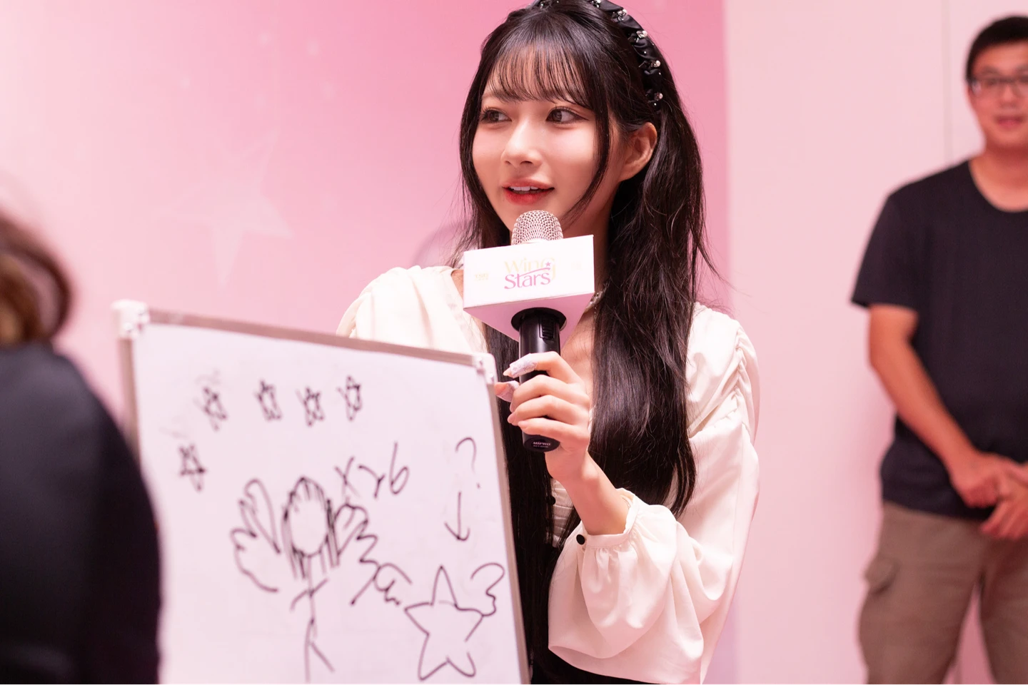 活動中,一粒精心規劃多項互動遊戲,邀請粉絲上台同樂。從考驗反應力的反邏輯遊戲、你畫我猜,以及最後的戴耳機讀唇語環節,不僅展現她親切自然的一面,也拉近與粉絲之間的距離,現場笑聲不斷、氣氛熱絡。