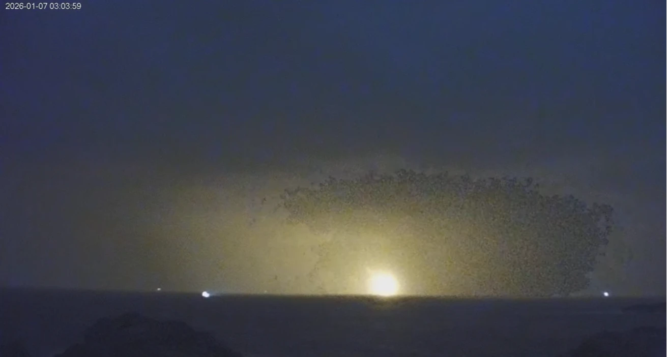 石梯坪風景區的即時影像可見,昨晚7時28分30秒左右,畫面右下方,疑似物體墜海,突然出現模糊黑點,接著出現短暫亮光,一兩秒就消失不見。