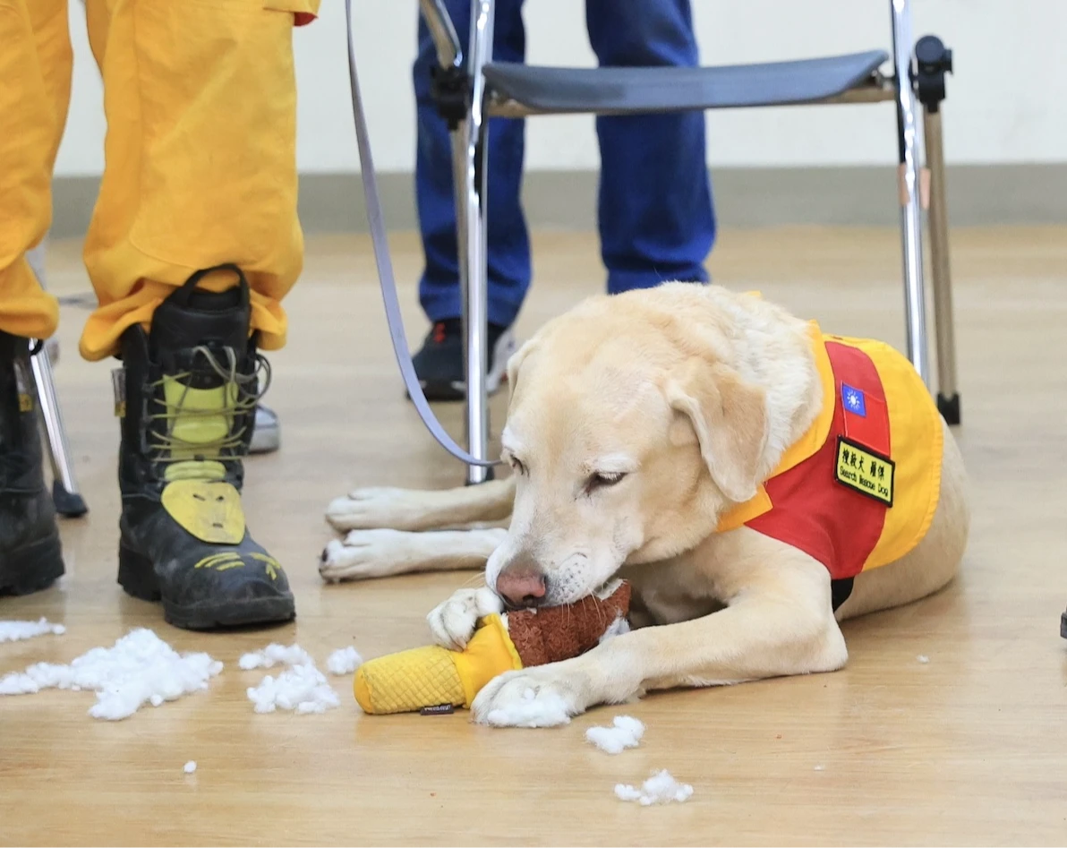 【記者王勇超/高雄報導】在台灣各地重大災害現場,搜救犬總是第一批進入瓦礫與泥流的勇者,只為搜尋一線生機,牠們以靈敏嗅覺與高度服從,在混亂、危險、轟鳴聲中協助搜救;在服役前,需歷經2到3年訓練,然而依規定,搜救犬年滿9歲便須退役,平均服役4到7年,且領養者條件嚴格,這些救援神隊友的生活安置、身心健康照護,以及離世後的追思機制,高市消防局都有相關機制,「牠們是隊員,不是裝備」,貢獻不會被遺忘。去年4月曾赴花蓮震災搜救、於砂卡礑步道成功尋獲罹難者的搜救犬「羅傑」,去年底退役後,現況也曝光。