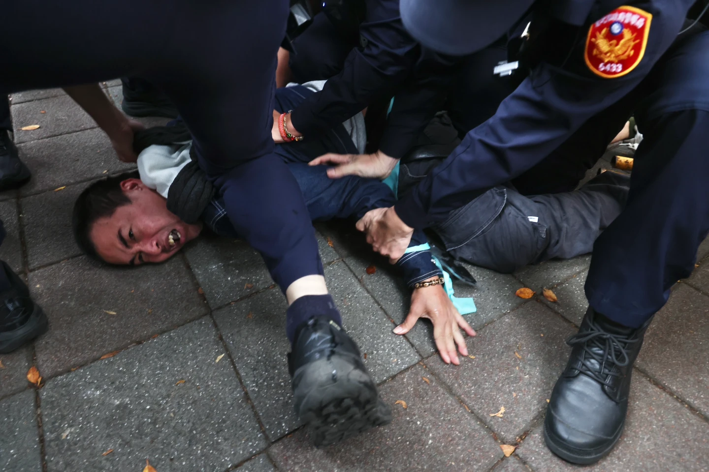 另外,新黨祕書長游智彬,今天下午攜帶水球到場,他不願意配合警方勸離,在人行道上丟擲水球,遭警方壓制,並依集會遊行法第5條、第21條規定,及警察職權行使法第27條、第28條旋即架離會場,帶回派出所保護管束。