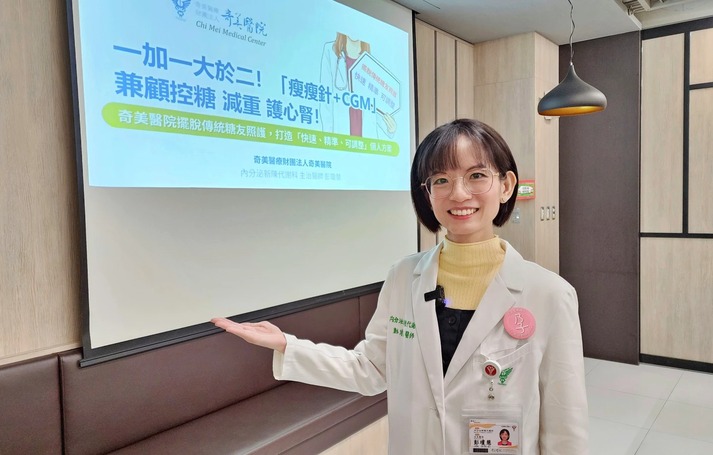 【記者王志弘/台南報導】糖尿病治療邁入精準醫療!奇美醫院內分泌新陳代謝科主治醫師彭瓊慧指出,傳統糖尿病照護常受限於3個月回診一次,導致調藥效率不彰,建議可透過結合強效腸泌素(瘦瘦針)與連續性血糖監測器(CGM),發揮「1加1大於2」效果,最快2週內即可穩定血糖,同時兼顧減重與保護心腎。