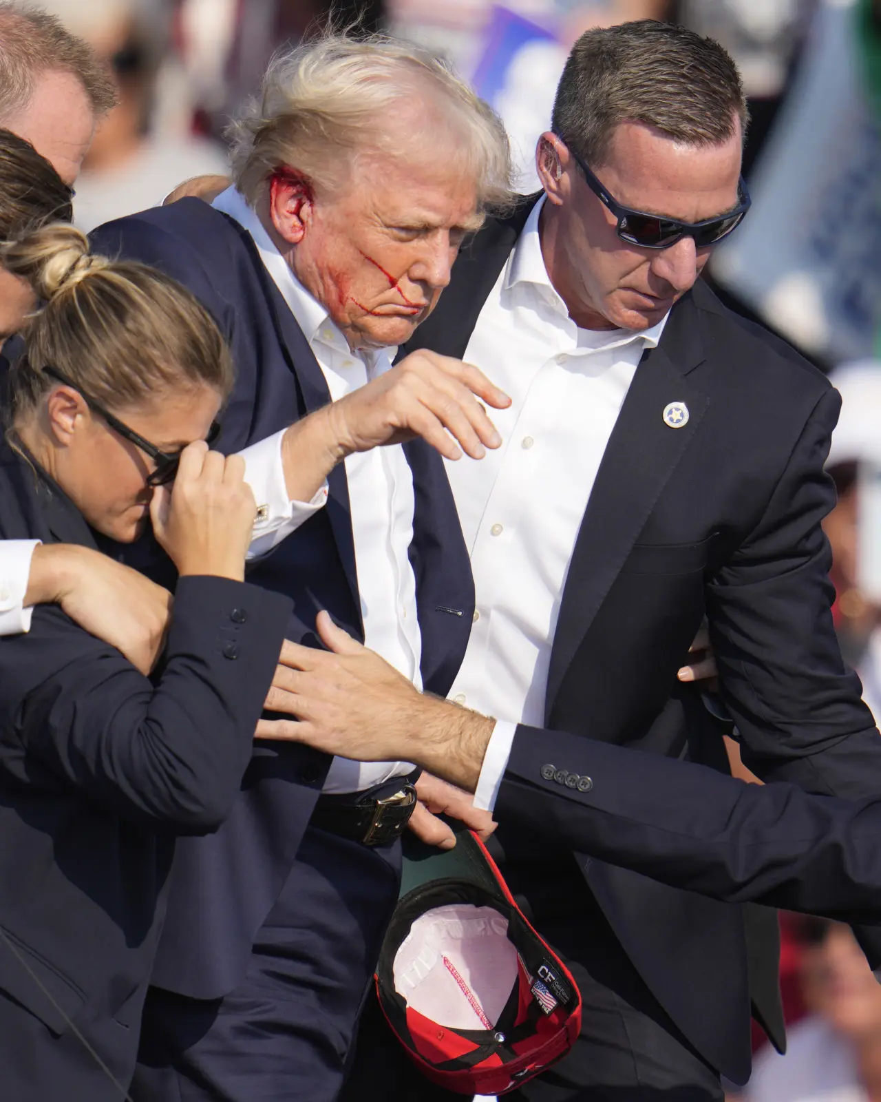 特工準備將川普帶下講台,鮮血從他耳朵流到臉頰。