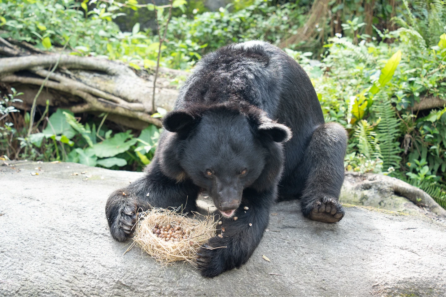 秋冬正是殼斗科植物青剛櫟結果的季節,野外動物松鼠、飛鼠、野豬、黑熊愛吃。青剛櫟果實帶有薄硬的外殼,亞洲黑熊像「嗑瓜子」一樣,咖滋咖滋地咬開果實、吐掉外殼、品味果仁,懂吃。
