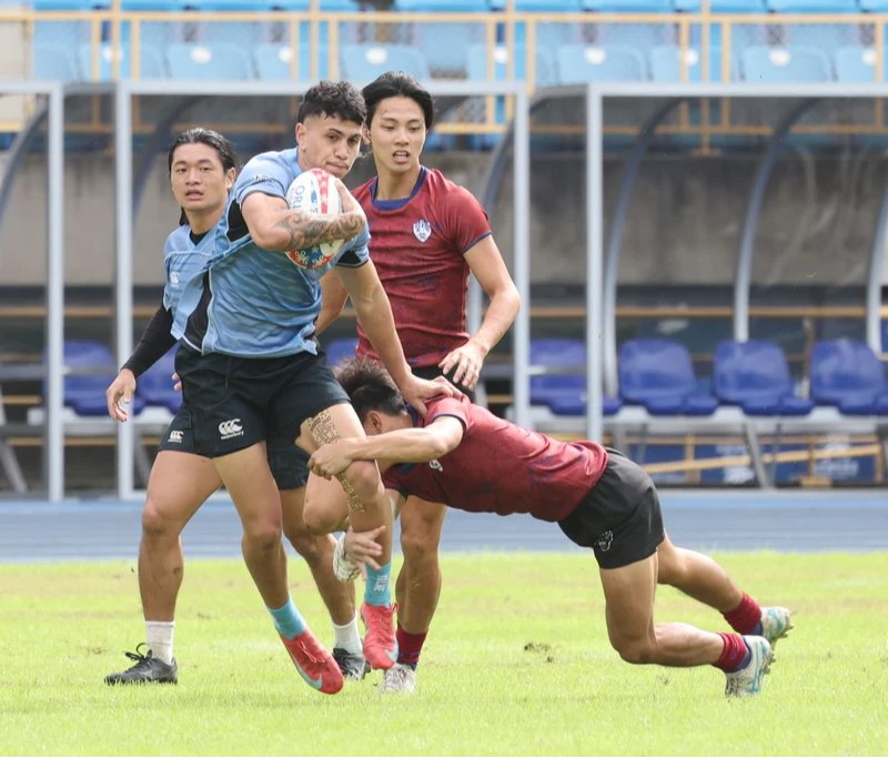 【記者陳雍仁/台北報導】第6屆台北元坤盃國際大專七人制橄欖球邀請賽27日在台北田徑場熱鬧開踢,這次不但邀請了來自日本、韓國與泰國共6所國外知名選校參賽,還有首次辦了高中組比賽,當中尋求公開組3連霸的日本拓殖大學,以及首次來台的韓國延世大學,兩隊首戰就「強碰」展開激烈廝殺,最終雙方實力不相上下7比7握手言和;地主希望台北市立大學則是靠著再見達陣10比7逆轉擊敗台體大。