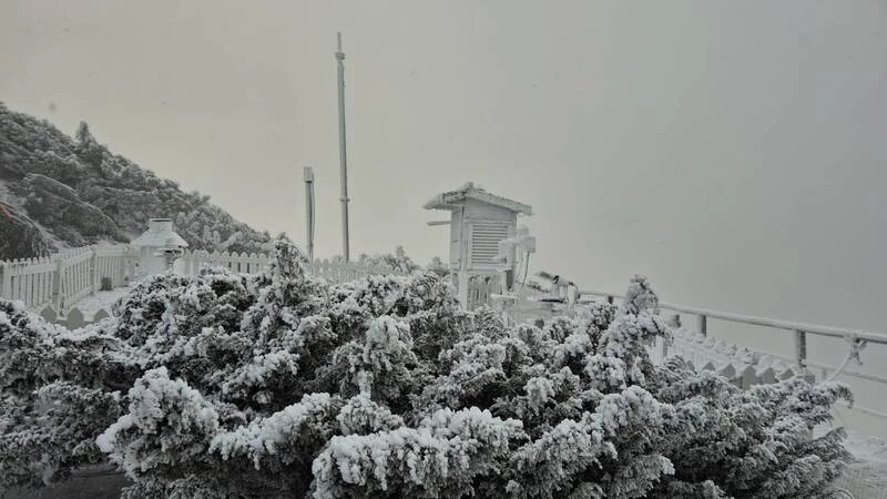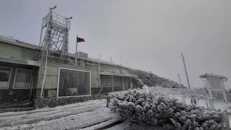 【記者於維奕/綜合報導】受到強烈大陸冷氣團影響,玉山深夜時候出現固態降水、霧淞,今天清晨6時,玉山北峰氣象站觀測降雪,積雪約1公分,早上7時50分低溫為攝氏零下4.2度。前中央氣象局長鄭明典則分享玉山氣象站觀測員燒開水替風向風速計除冰過程,吸引破20萬次觀看。