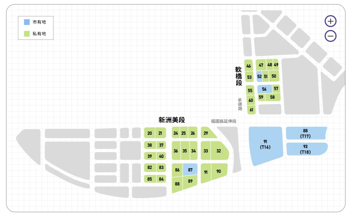 隨著輝達進駐北士科T17、18基地僵局未解,北市府端出北士科T12基地備案,輝達也將進一步評估;而T12基地街廓有86、87、88、89地號,其中86、88、89地號皆為私有地,市有地僅為新洲美段87地號、約0.65公頃,由台北市地政局土地開發總隊管理,形狀方整,雙面臨路。
