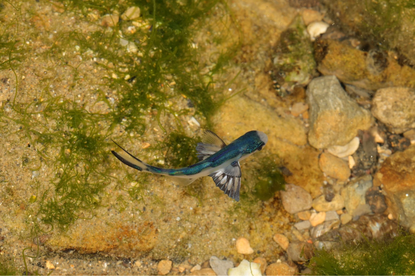 海洋科技博物館指出,圓鯧 (Nomeus gronovii) 身形扁平,因胸鰭與腹鰭延伸成「雙鰭」外觀,常被誤認為小飛魚。圓鯧是世界上少數能耐受僧帽水母刺絲胞的魚類,尤其是幼魚,會穿梭在水母致命的觸手間,利用水母的毒性當作天然防護罩,以避開掠食者。值得注意的是,僧帽水母過去多在夏季靠岸,這次在冬季出現,研判與強烈東北季風和外洋環流共同作用,將這群體推向岸邊有關。