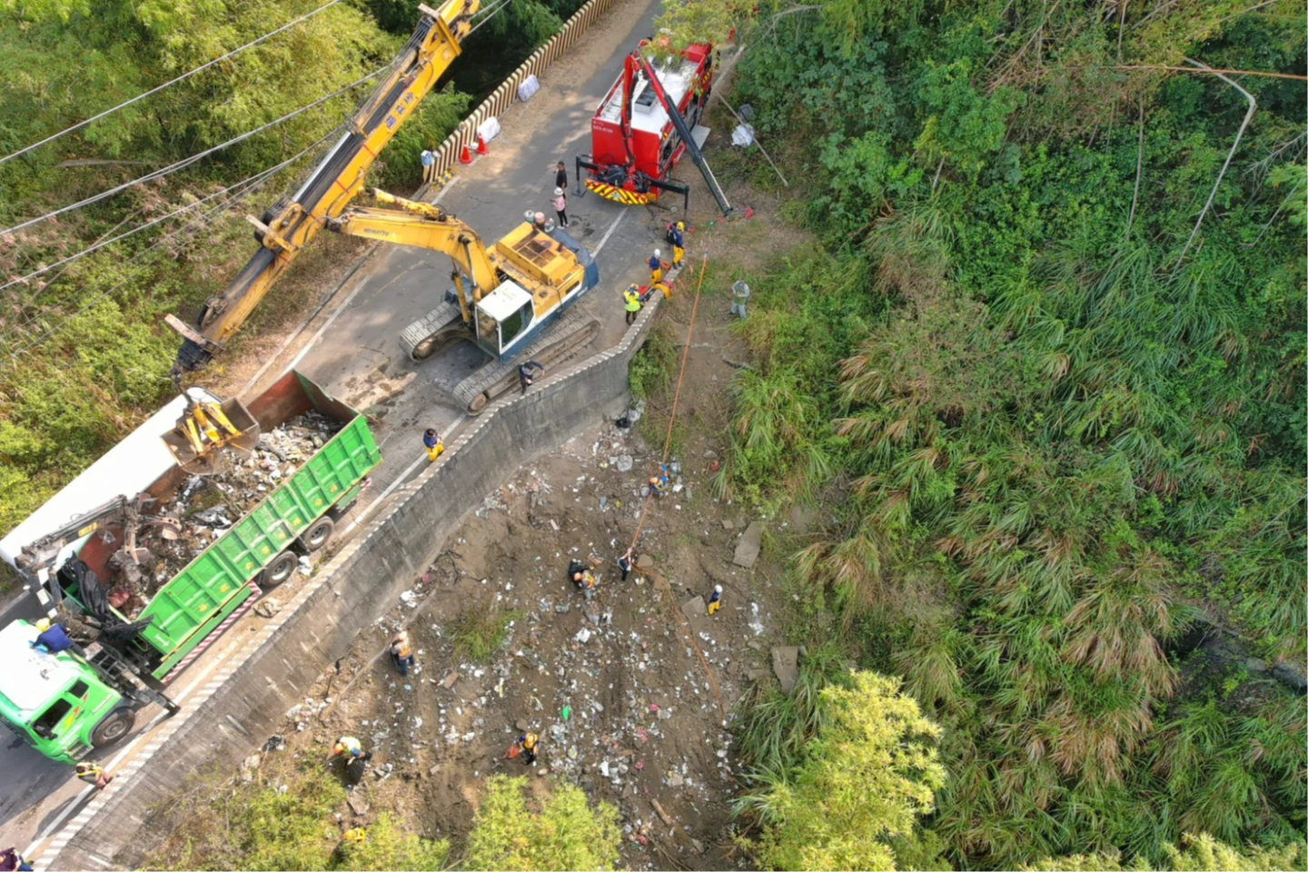 高市環保局說,影像相關資料已向鄰近民宅調閱,並由警察局協助偵辦,目前已掌握數台可疑清運車輛,全案已報請橋檢指揮,檢警正積極偵辦中。環保局強調,本案將於今日中午前完成現場清理,後續將持續配合檢警追查不法來源,並向行為人求償代履行費用,以捍衛環境正義。