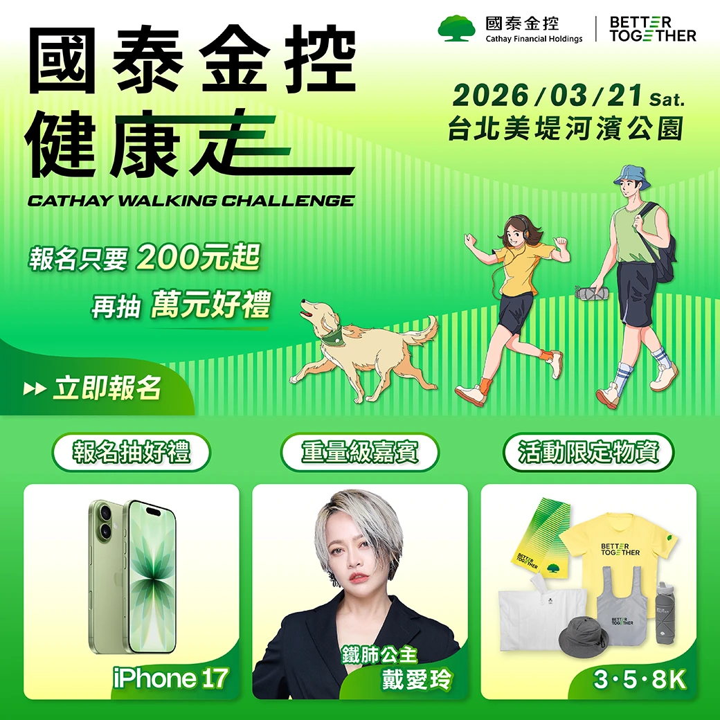 「2026國泰金控健康走」熱烈報名中 321齊步走!你走路他捐款